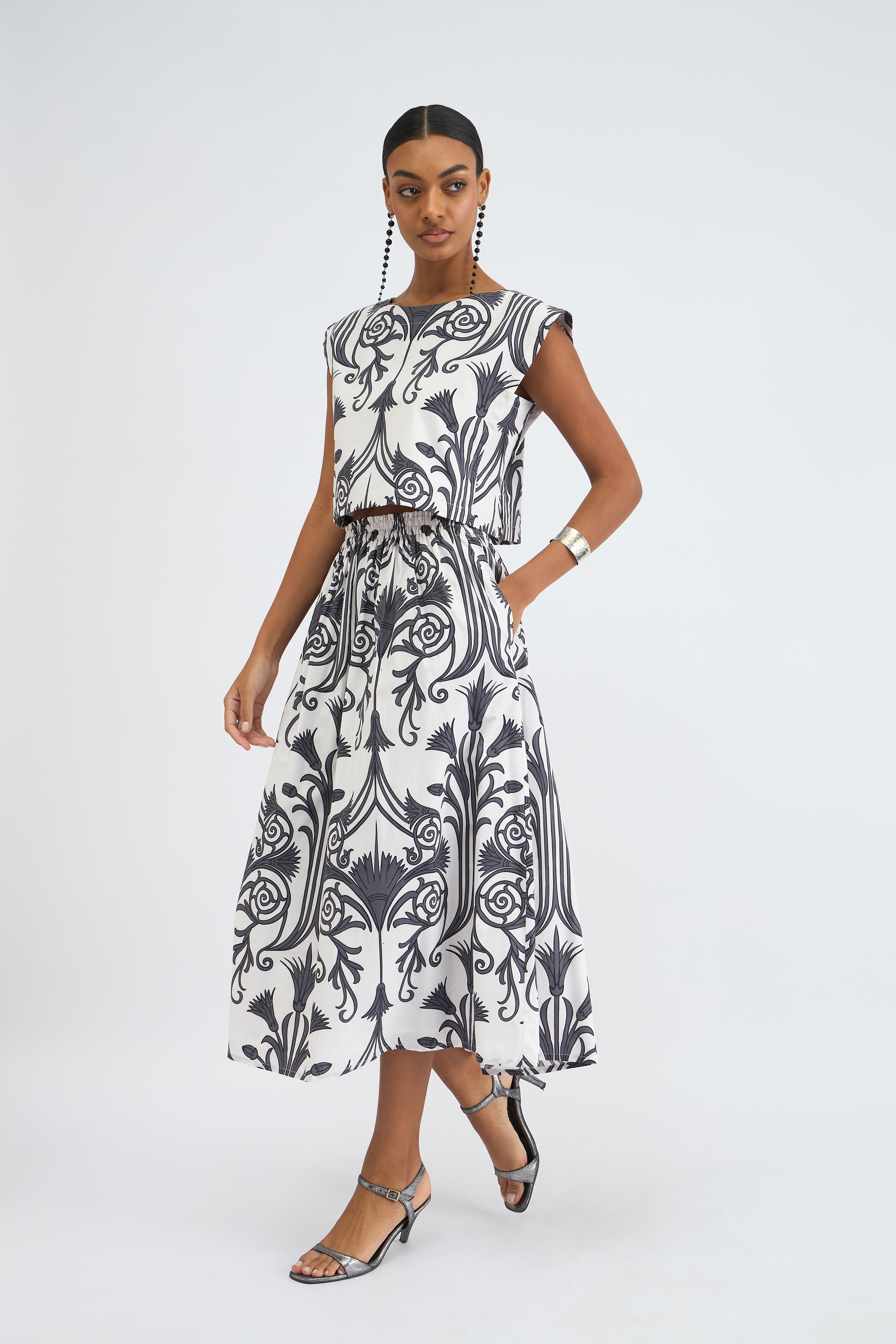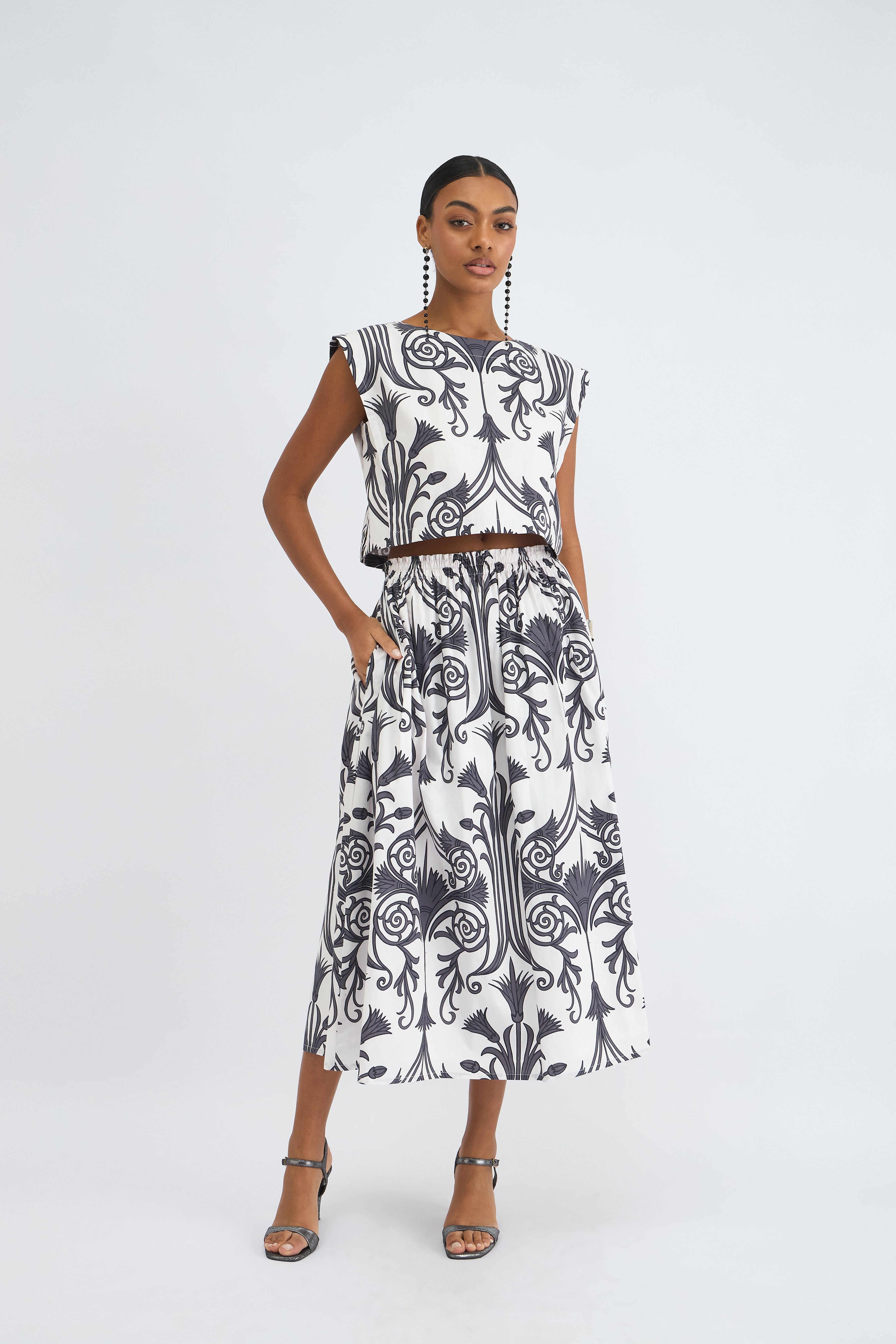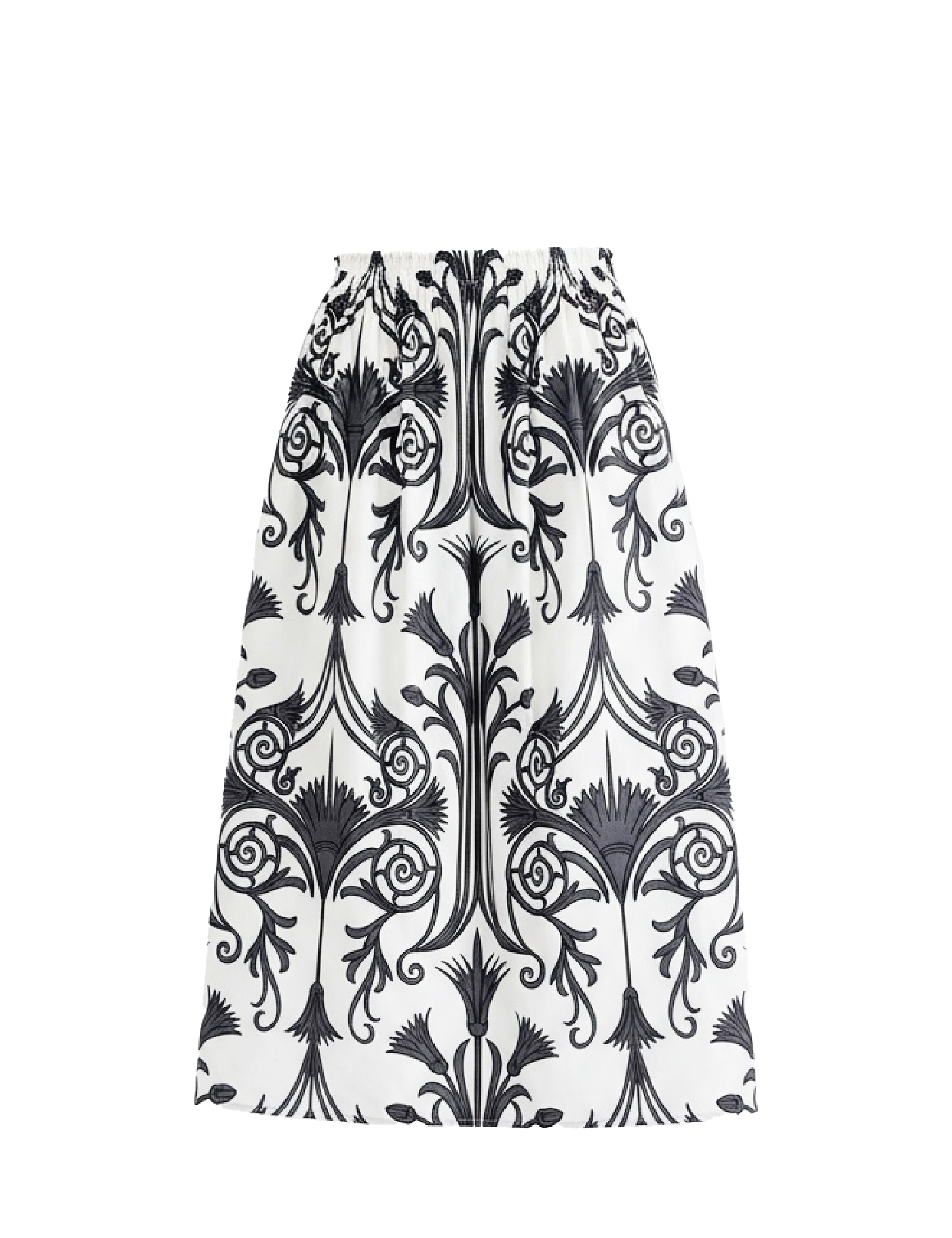Amber is a midi skirt with a flattering A-line silhouette, hidden pockets, and offers exceptional comfort at the waist thanks to its elastic waistband. Pair it with flats for a casual daytime look, or dress it up with heels.