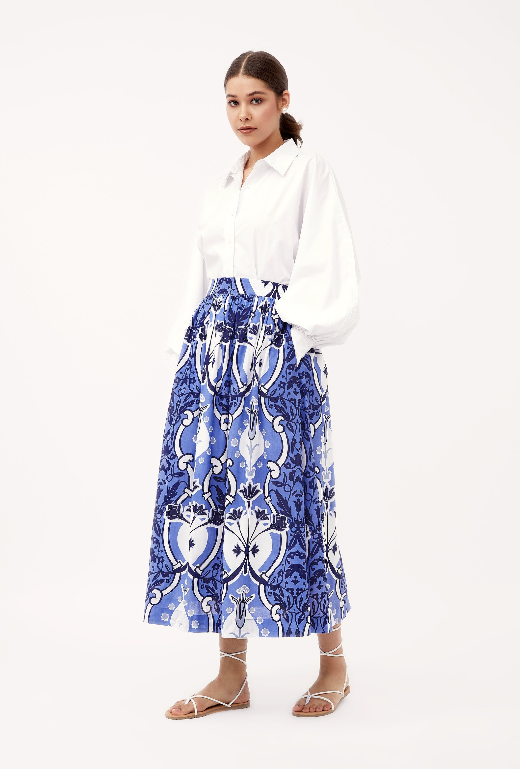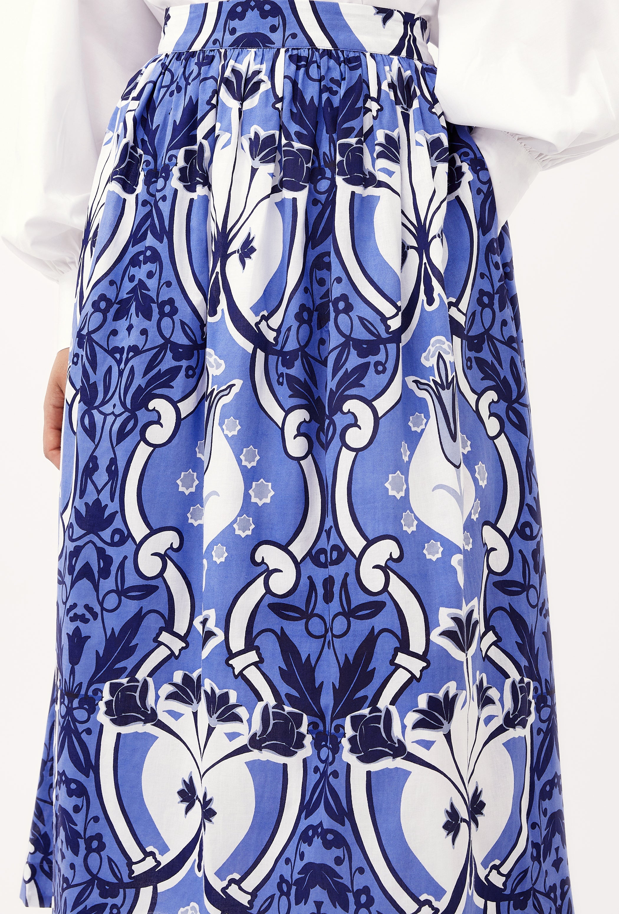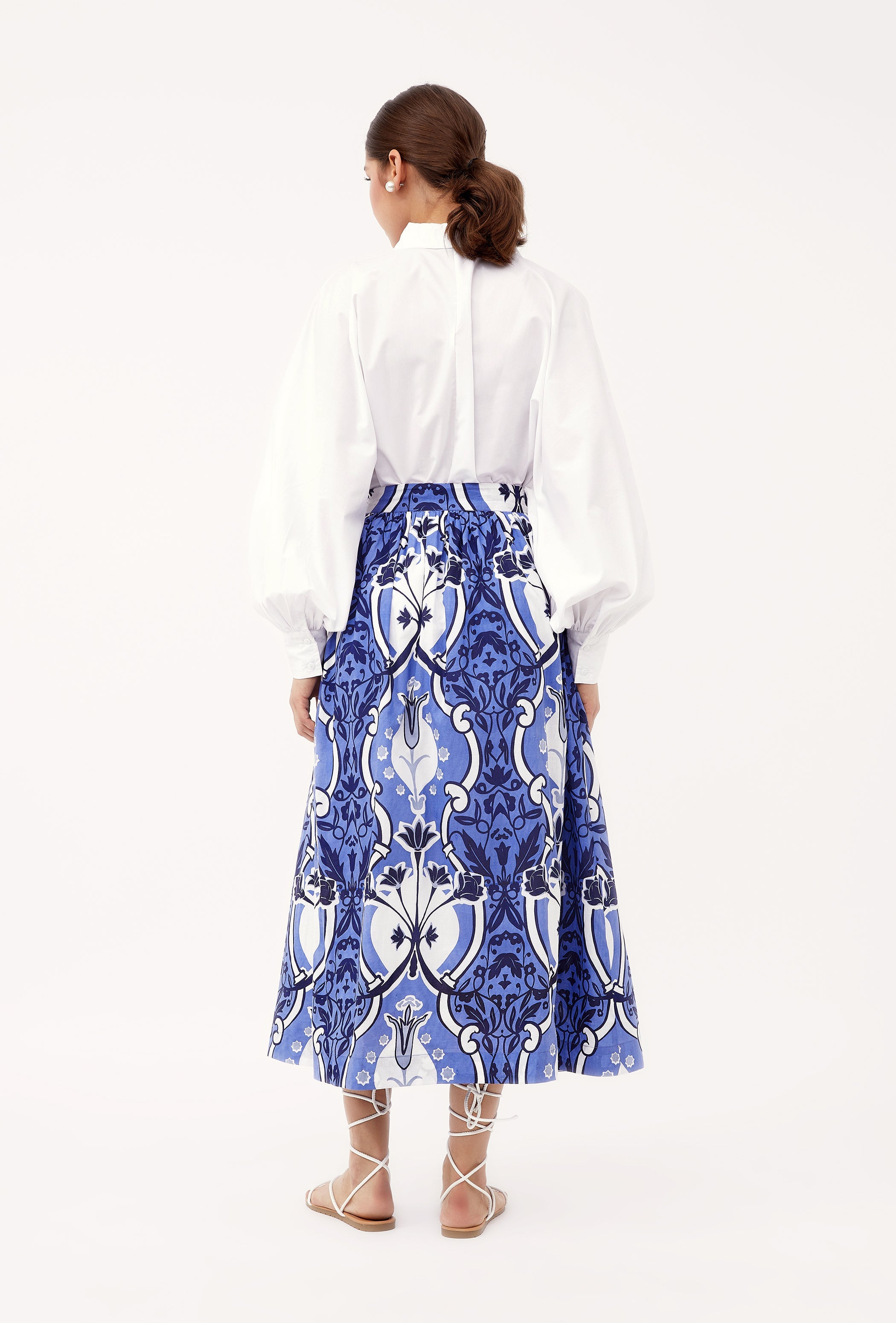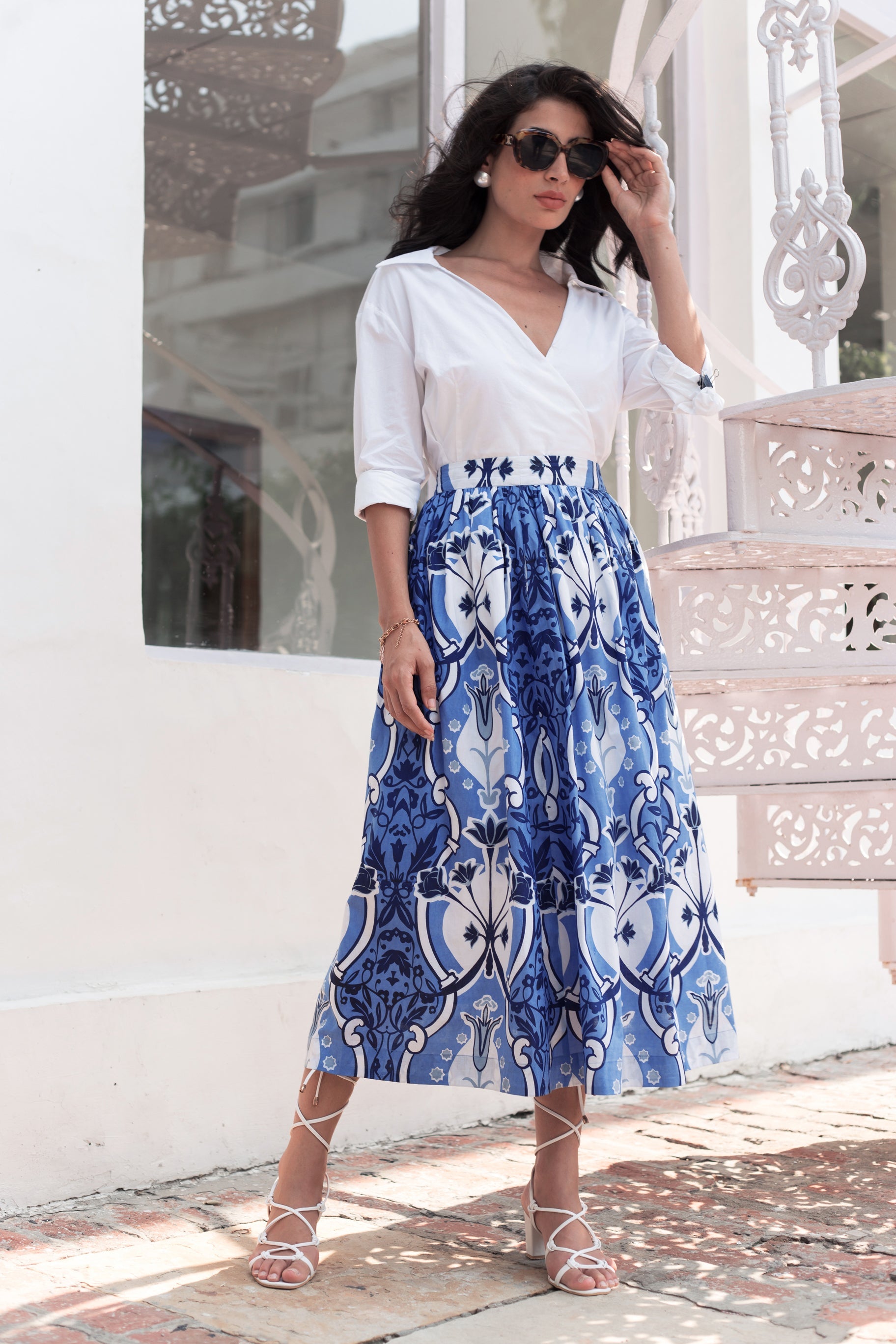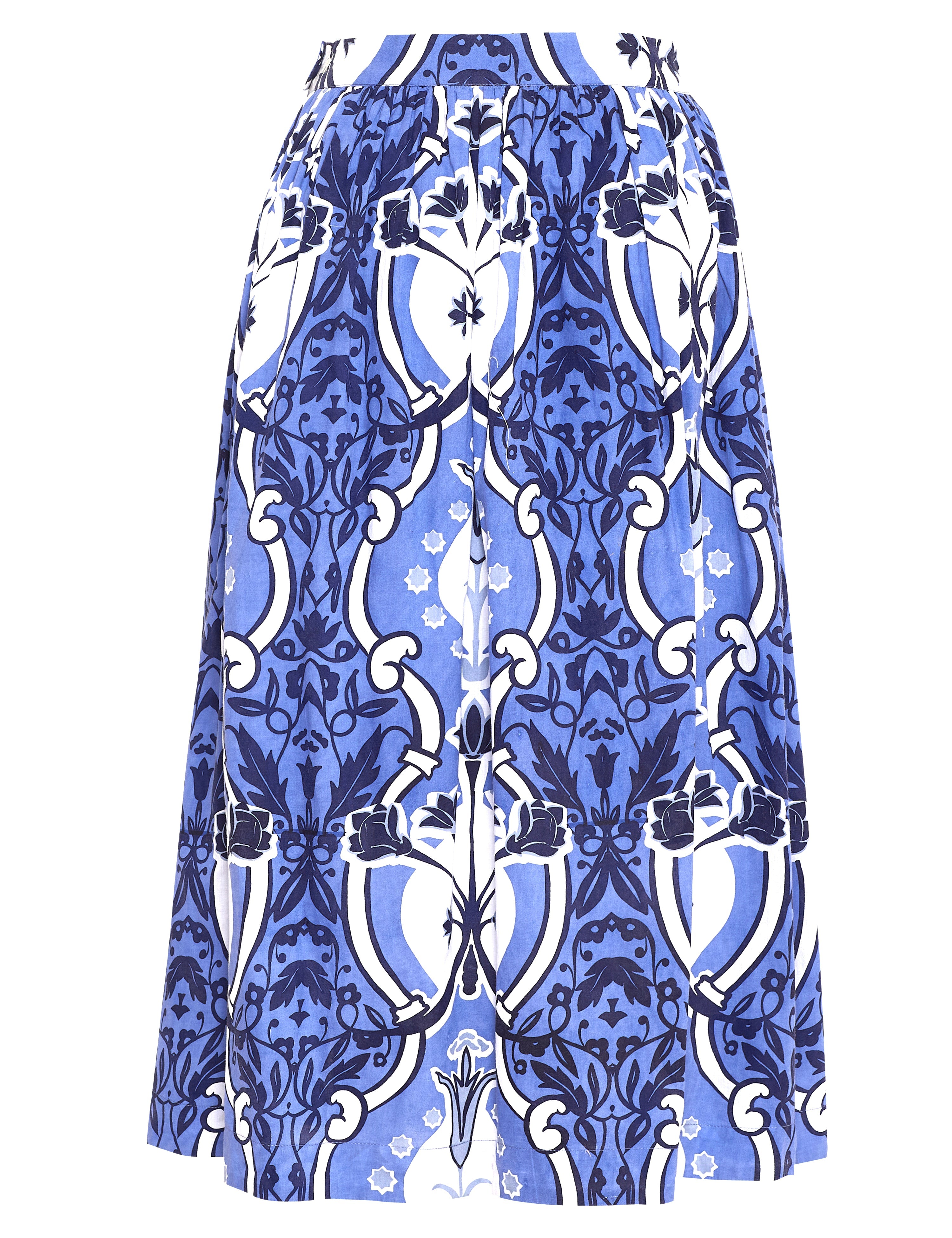 The Anna skirt is a perfect companion for leisurely strolls through the charming streets of Florence. The midi skirt features a flattering A-line silhouette, hidden pockets, and an adjustable waist. Pair it with flats and a white tee for a casual daytime look, or dress it up with heels for a sophisticated evening ensemble. Anna is made from a soft, breathable cotton cambric fabric that will keep you cool on a hot summer day. Inspired by ornamental stone railings of Lake Como's grand villas, this print exudes grandeur and elegance.