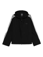 BLACK HOODED NECKLINE ZIP FASTENING LONG SLEEVES SLEEVE STRIPES RELAXED FIT