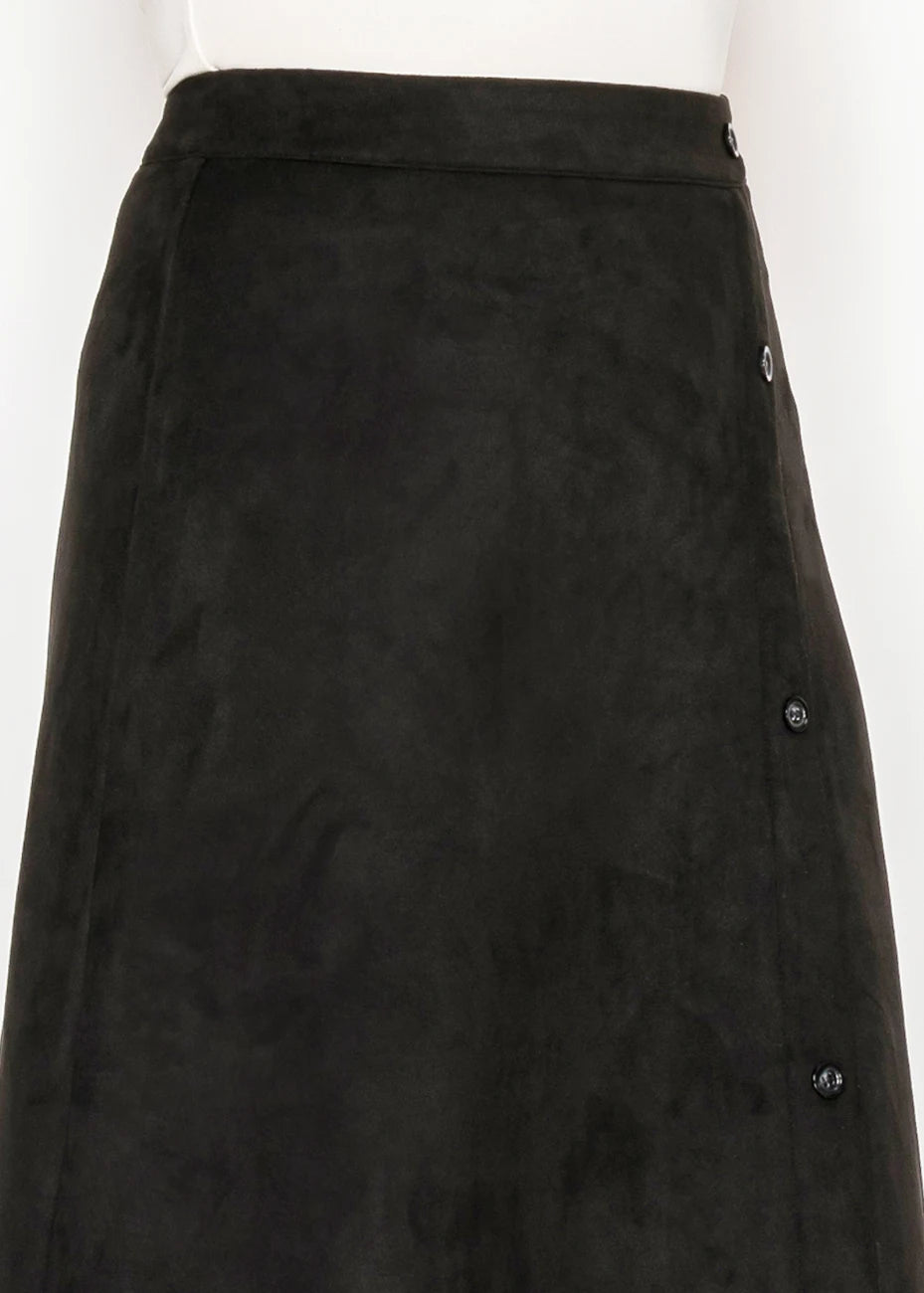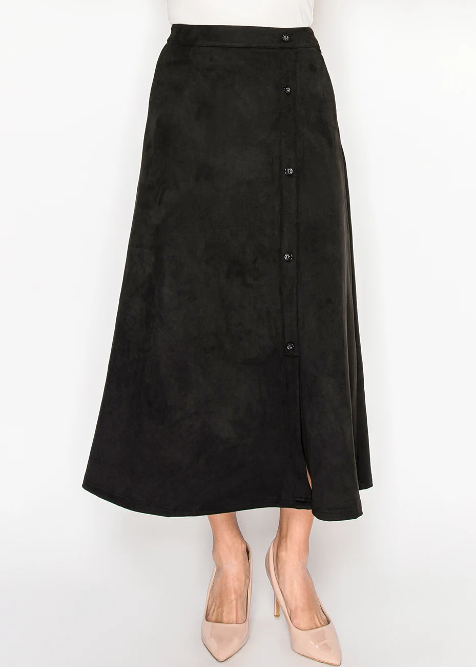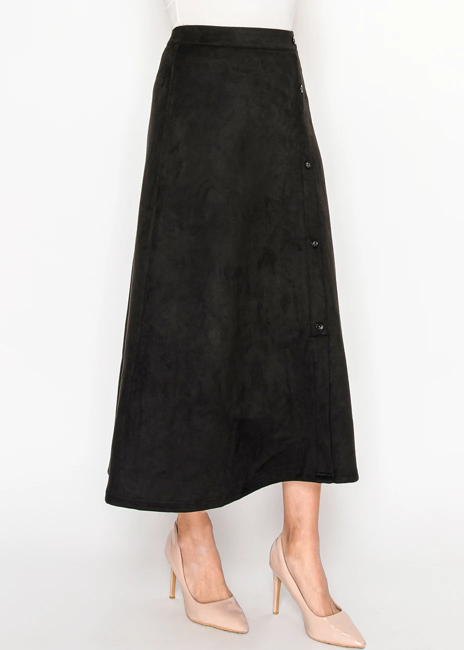 This is one of those skirts you’ll live in—soft, flattering, and just the right amount of detail. The side buttons add a little something special without trying too hard.
