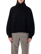 Elevate your cold-weather wardrobe with this luxurious black wool cashmere knitwear from LOULOU DE SAISON. This oversized pullover sweater features a sophisticated turtleneck design and long sleeves, crafted from a premium wool-cashmere blend that offers exceptional warmth and softness.