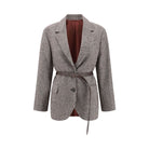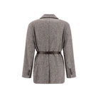 Brunello Cucinelli’s Wool Blazer Jacket is an elegant and refined piece, featuring a classic lapel that lends an understated and stylish touch. The single-breasted front closure offers a sleek, clean silhouette, while the two welt pockets on the front and the slit pocket on the front panel add practicality and understated style detail. The adjustable and removable leather belt detail allows you to customize the fit, while the back slit provides freedom of movement and a dynamic look.