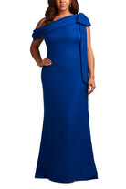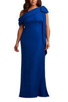 Cassia Bow-Shoulder Crepe Gown - PLUS SIZE RY/BL