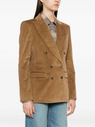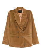 ETRO CORDUROY DOUBLE-BREASTED BLAZER BROWN BEIGE CORDUROY FINISH DOUBLE-BREASTED CLOSURE NOTCHED LAPELS LONG SLEEVES FLAP POCKETS COTTON ELASTANE VISCOSE ELASTANE BLAZERS JACKETS CLOTHING WOMEN