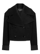 DOLCE AND GABBANA DOUBLE BREASTED CROPPED JACKET BLACK BLACK WIDE LAPELS DOUBLE BREASTED BUTTON CLOSURE LONG SLEEVES CUFFED DETAIL VIRGIN WOOL SILK PVA SPONGE SILK SPANDEX ELASTANE CROPPED JACKETS JACKETS CLOTHING WOMEN