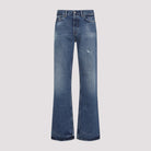 BLUE ORGANIC COTTON FRONT BUTTON AND ZIP FASTENING BELT LOOPS CLASSIC FIVE POCKETS REAR LOGO PATCH