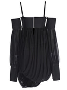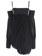 Make a dramatic statement with this Celine Elastic Top, a masterpiece of contemporary design and luxurious craftsmanship. This striking black top features delicate spaghetti straps paired with off-shoulder long sleeves, creating an alluring silhouette that's both sophisticated and avant-garde.