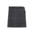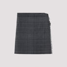 BALENCIAGA PLEATED GREY WOOL MINI SKIRT. CRAFTED FROM GREY CHECKERED WOOL, WRAP CONSTRUCTION, PARTIALLY PLEATED, TWO BELTS WITH BUCKLE FASTENING ON THE SIDE, FRINGED HEM, MINI LENGTH.