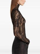 COURREGES HIGH-NECK TOP WITH LACE PANEL BLACK POLYAMIDE ELASTANE TSHIRTS AND JERSEY SHIRTS TOPS CLOTHING WOMEN