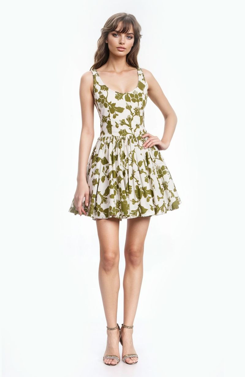 This Jackie Floral Print Fit & Flare Mini Dress by Jewel Badgley Mischka is a dream come true. Featuring a super flattering skater style silhouette and a scoop tank neckline, this sleeveless mini dress is perfect for those warm summer days. The cinched waist accentuates your figure, while the vibrant floral print adds a touch of playful charm. Made from comfortable cotton, this fit & flare dress offers a modern fit you'll adore. Twirl the day away in this gorgeous green multi floral print!