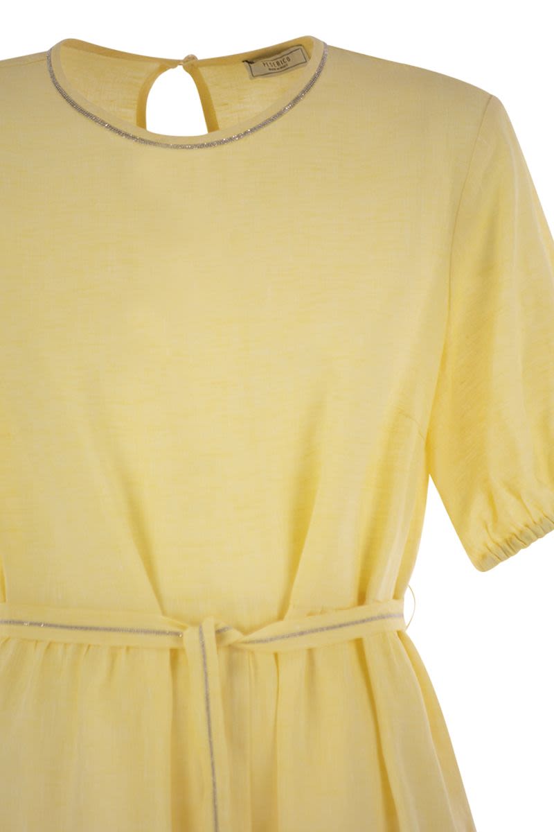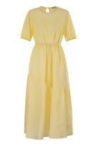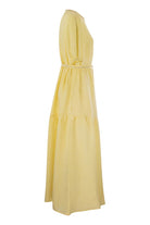 MADE OF LIGHTWEIGHT PURE LINEN CANVAS, THIS LONG DRESS IS A REFINED AND NATURAL STYLE CHOICE. THE GARMENT FEATURES SHORT SLEEVES GATHERED AT THE BOTTOM, ADDING A ROMANTIC AND FEMININE TOUCH. THE WAIST BELT ENHANCES THE SILHOUETTE, WHILE THE ASYMMETRICAL FLOUNCE SKIRT GIVES A FLOWING AND HARMONIOUS FALL, ENSURING COMFORT AND FREEDOM OF MOVEMENT. COMPLETING THE DESIGN OF THE GARMENT ARE THE LUMINOUS DETAILS ON THE NECKLINE AND FABRIC BELT THAT EMBELLISH THE DRESS, GIVING BRIGHTNESS. THE FRESHNESS OF THE LINEN AND THE LOOSE FIT MAKE THIS GARMENT THE IDEAL CHOICE FOR FACING HOT SUMMER DAYS WITH ELEGANCE. - LONG DRESS WITH SHORT SLEEVES GATHERED AT THE BOTTOM - ROUND NECKLINE - LIGHT STITCH ON NECKLINE AND FABRIC BELT - SKIRT WITH ASYMMETRICAL FLOUNCE - LOOSE FIT - BUTTON CLOSURE AND BACK DROP TRIM DESIGNER ID: S02163A02600 915