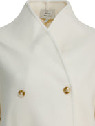 Elevate your outerwear collection with the "Meyer" Wool Coat from LOULOU DE SAISON. This sophisticated piece features a timeless double-breasted silhouette in a luxurious solid cream hue, complete with elegant gold-tone buttons and a flattering shawl collar.