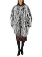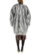 Make a bold statement with this luxurious ecofur jacket from MAX MARA SPORTMAX. Crafted from 100% polyester, this stunning piece features a dramatic shaggy texture in a striking black and white colorway that exudes sophistication and modern glamour.