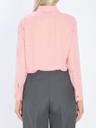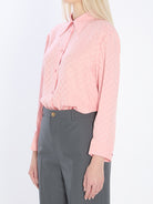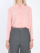 Elevate your wardrobe with this exquisite Gucci pink GG silk shirt, a luxurious essential that seamlessly blends Italian craftsmanship with timeless style. Crafted from sumptuous silk, this button-down features the iconic GG monogram pattern in a sophisticated tonal finish, creating subtle texture and visual interest.