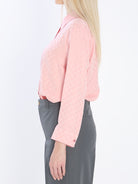 The classic shirt collar and long sleeves make this piece incredibly versatile—pair it with tailored trousers for a polished office look, or style it with denim for elevated weekend wear. The soft blush pink hue adds a feminine touch while remaining refined enough for professional settings.