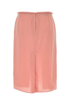 Elevate your wardrobe with this exquisite Pink GG Silk Skirt from Gucci. Crafted from luxurious silk, this elegant knee-length skirt features the iconic GG monogram pattern in a beautiful pink hue that exudes sophistication and timeless style.