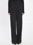 DOLCE AND GABBANA PLEATED WIDE-LEG TROUSERS BLACK BLACK FRONT PLEATS HIGH WAIST BELT LOOPS VIRGIN WOOL SPANDEX ELASTANE STRAIGHT-LEG PANTS PANTS CLOTHING WOMEN