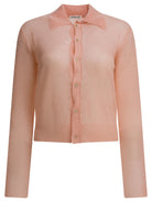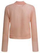 Elevate your knitwear collection with this exquisite salmon pink cardigan from AURALEE. Crafted from a luxurious mohair and nylon blend, this piece offers an incredibly soft, cloud-like texture that feels as beautiful as it looks.
