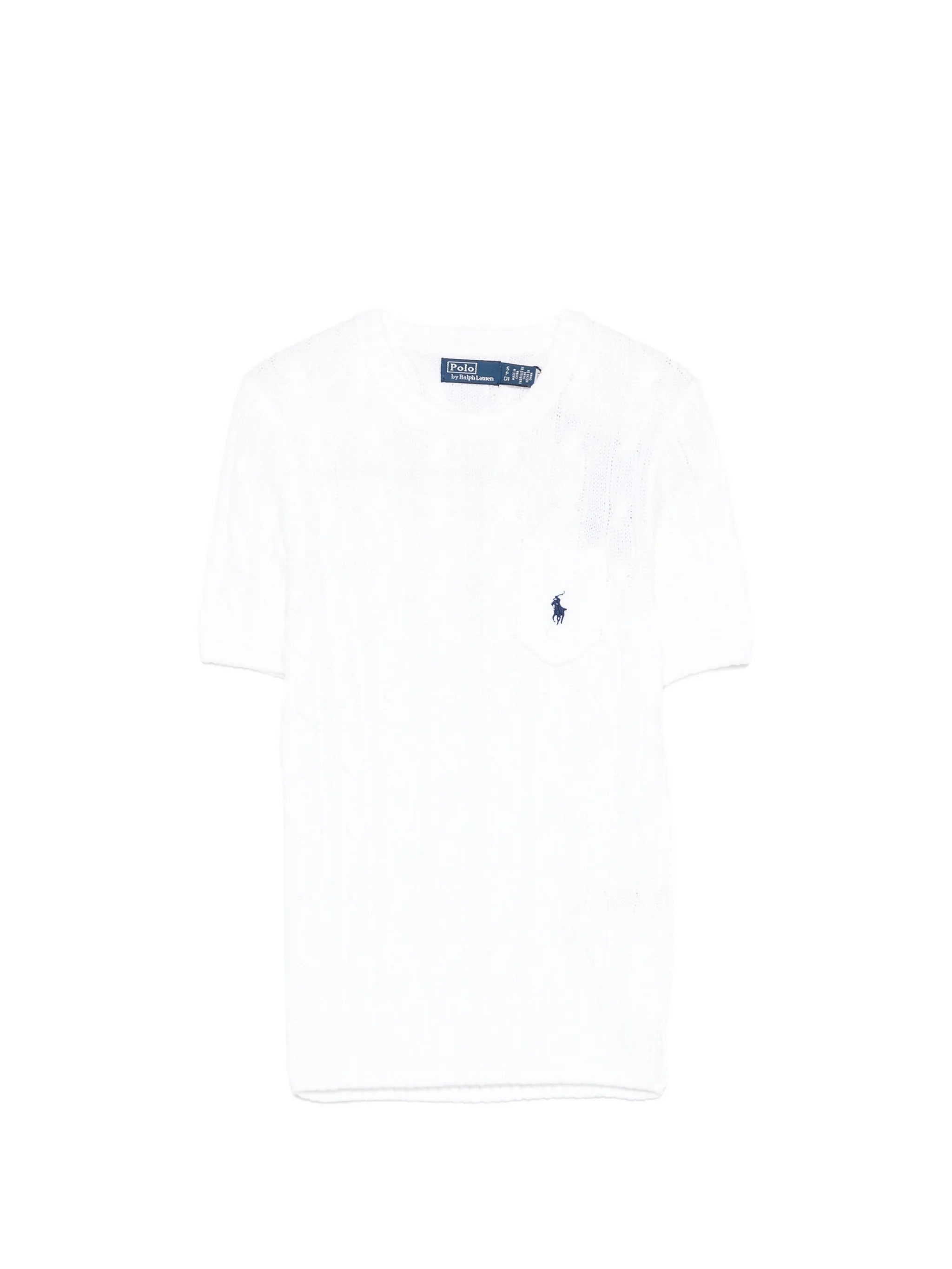 Elevate your warm-weather wardrobe with this exquisite short-sleeved cable-knit sweater from Polo Ralph Lauren. Crafted from 100% cotton, this timeless pullover features classic cable-knit detailing, ribbed cuffs and hem, and a charming patch pocket on the left chest adorned with the iconic embroidered pony logo.