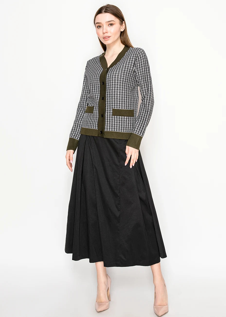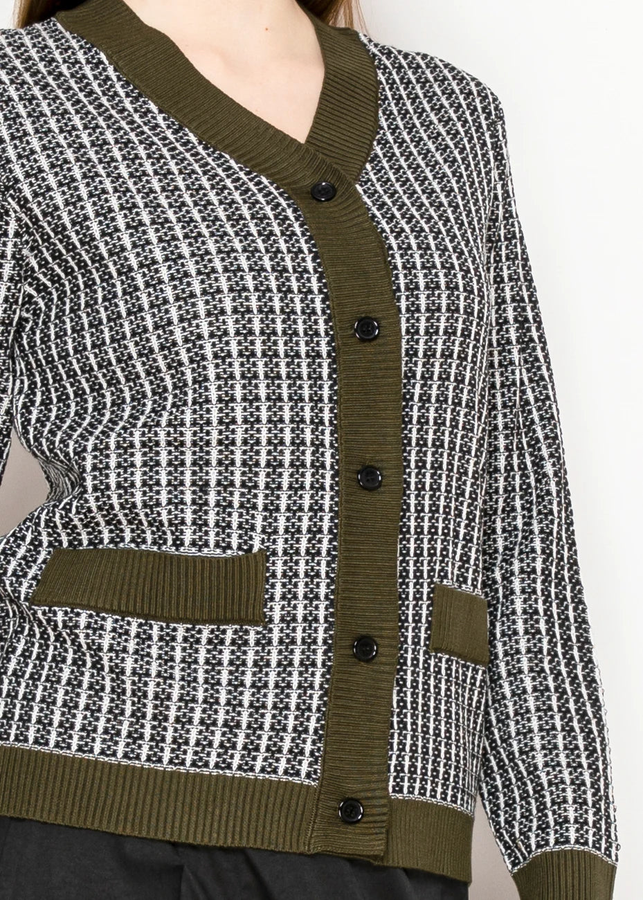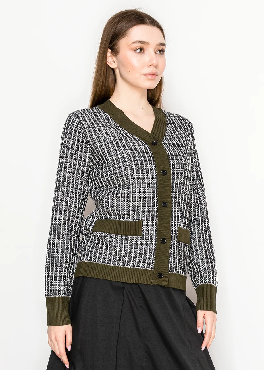Classic meets modern: soft knit structure, smart contrast, and an easy button-up front—perfect for layering.