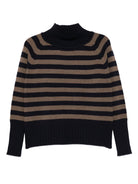 BROWN AND BLACK HORIZONTAL STRIPES HIGH NECK LONG SLEEVES RIBBED CUFFS RIBBED HEM