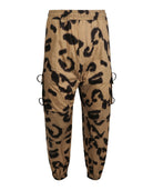 - All-over leopard print; Decorative D-rings; Four front flap pockets, two front welt pockets and two back flap pockets