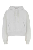 Elevate your casual wardrobe with this luxurious white cotton oversized sweatshirt from Gucci. Featuring a relaxed, boxy silhouette and classic hoodie design, this long-sleeve piece effortlessly combines comfort with high-fashion appeal.