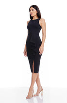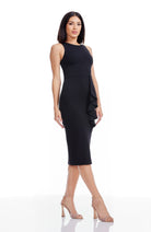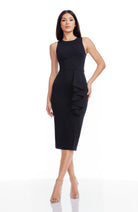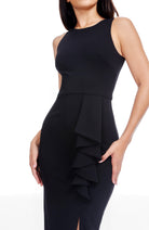 The sophisticated Ines Dress boasts a sleeveless design, with a round neckline and a cascading ruffle that falls elegantly at midi length.