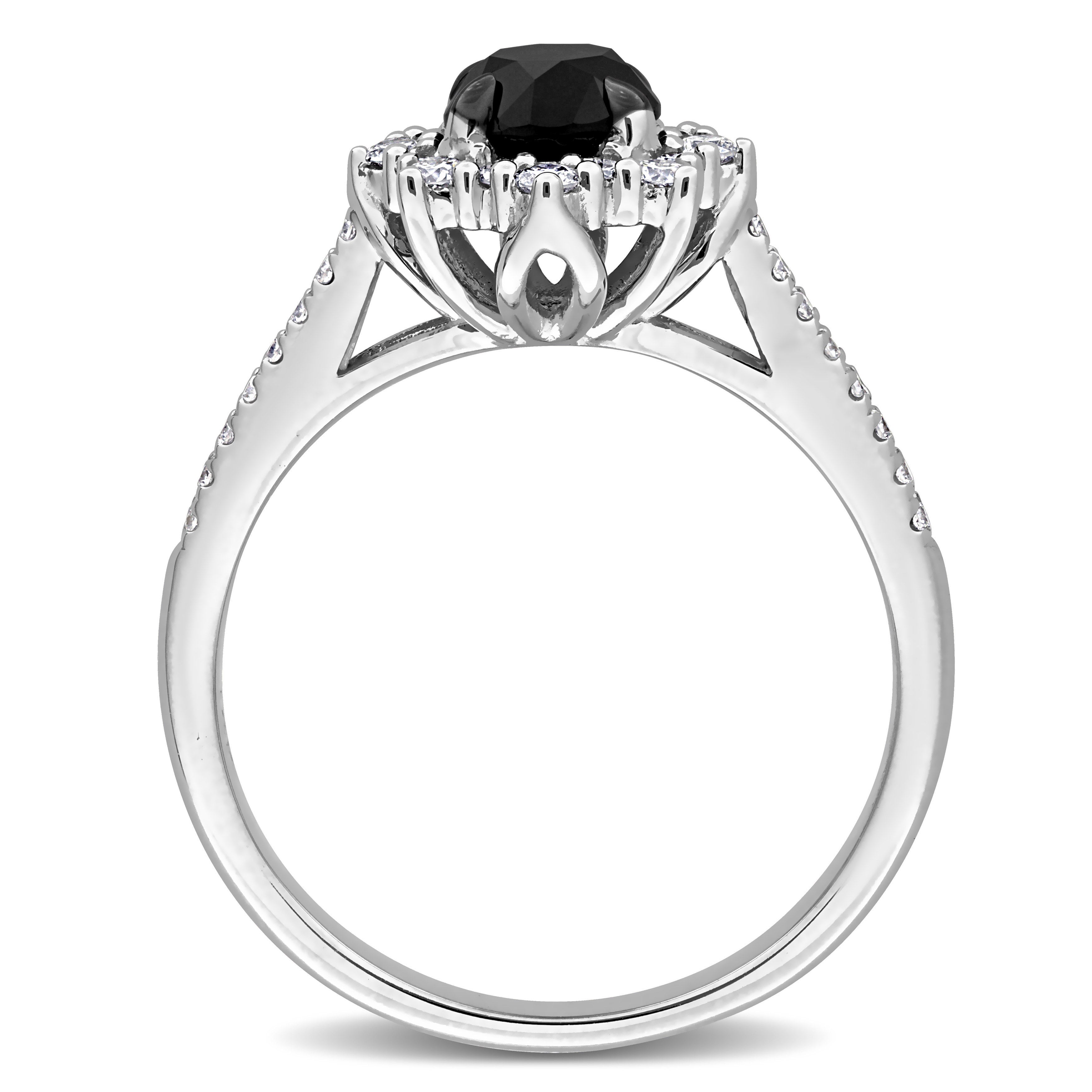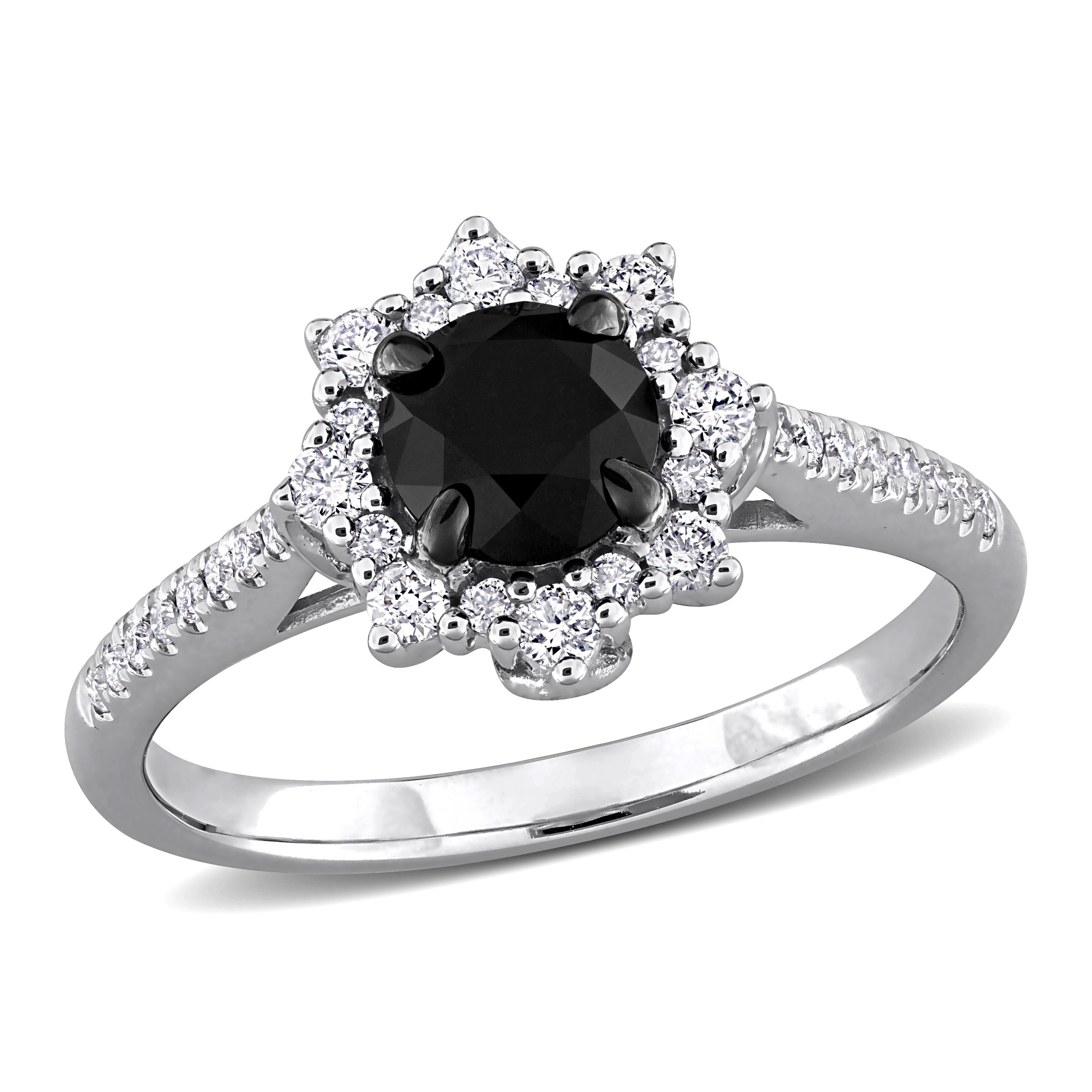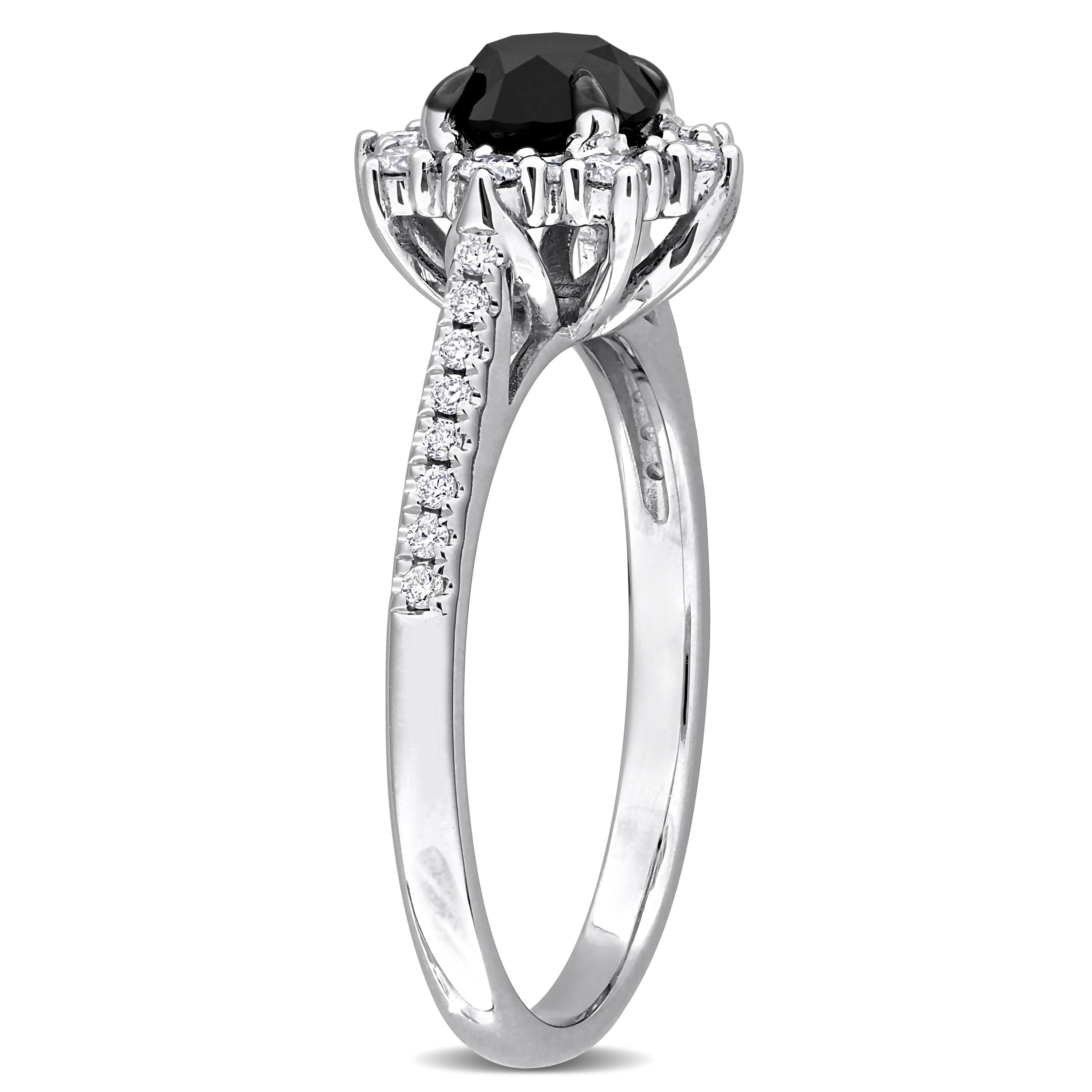 1-1/6ct. T.W. Black & White Diamond Floral Halo Engagement Ring in 14k White Gold