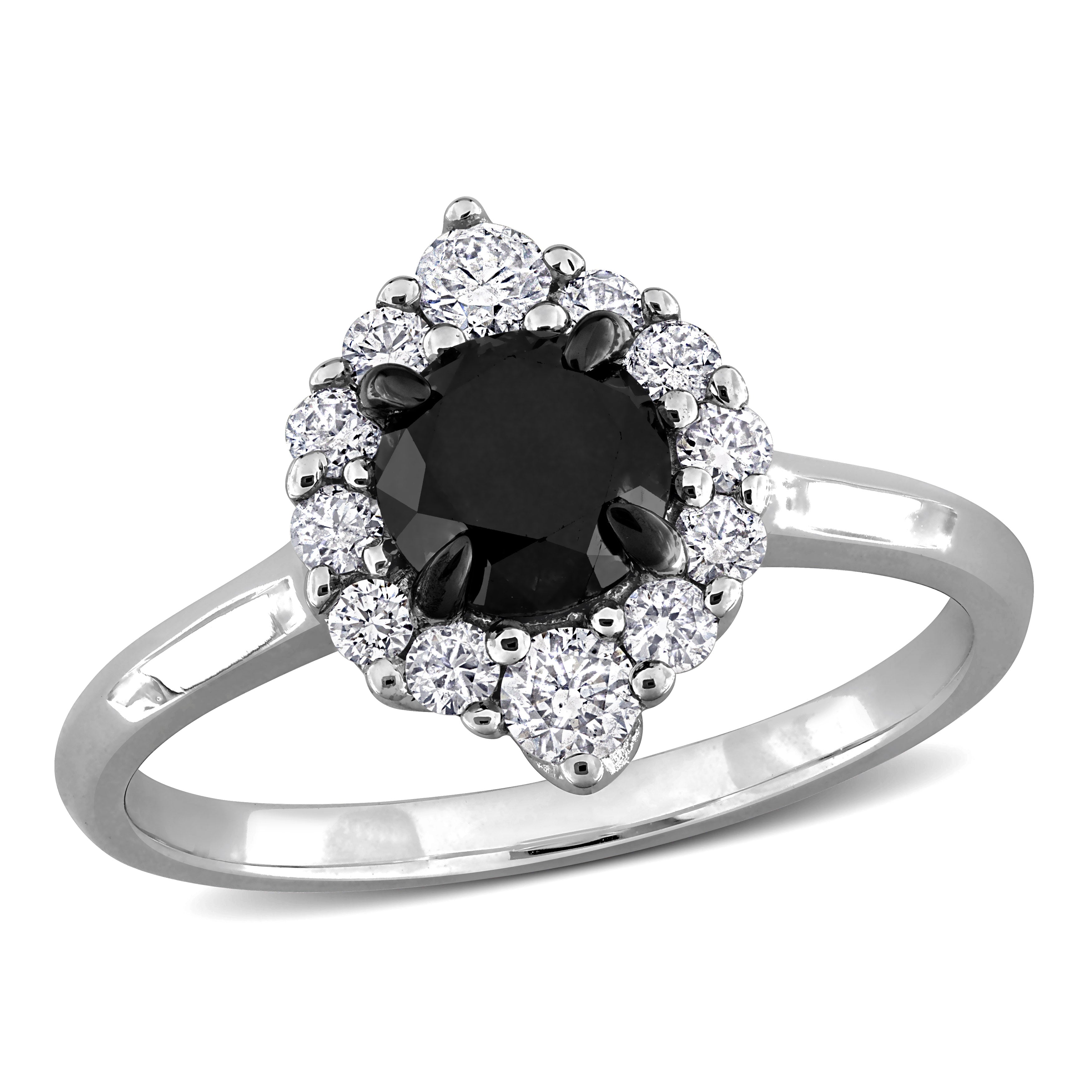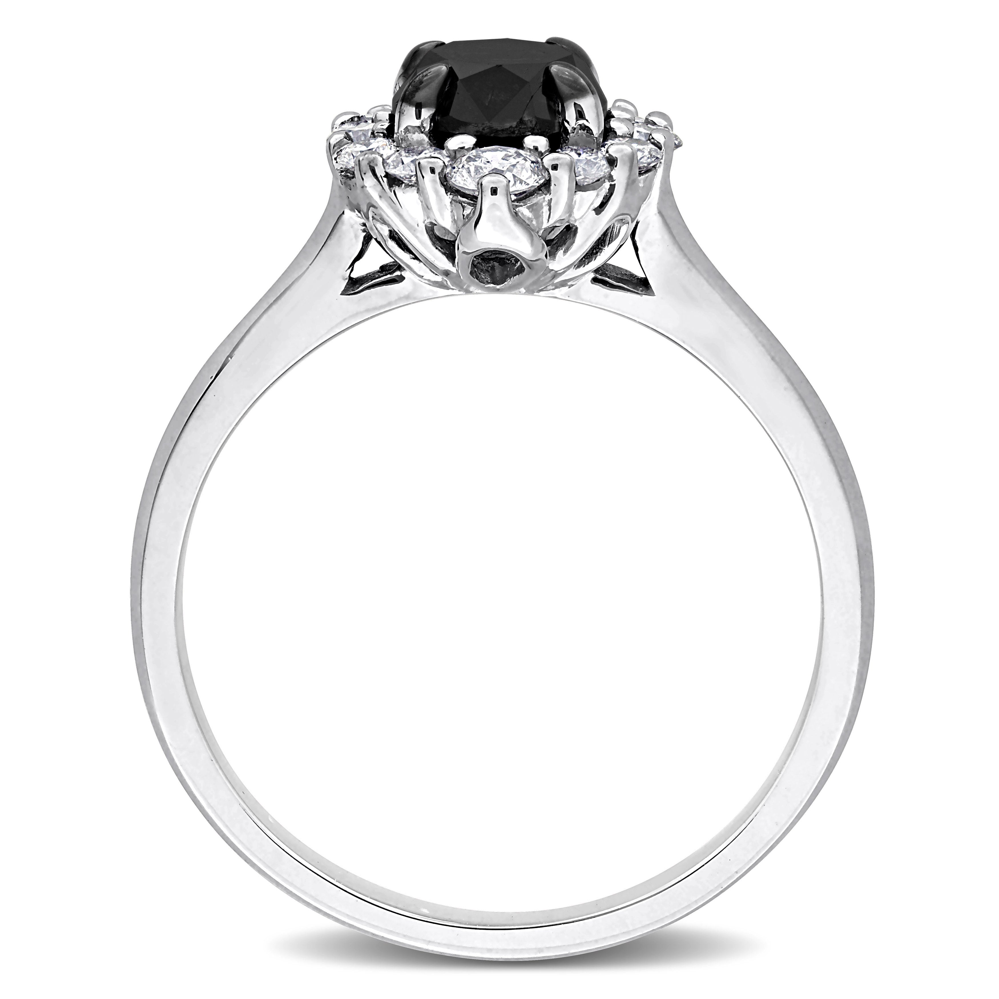 1-2/5ct. T.W. Black & White Diamond Halo Engagement Ring in 14k White Gold