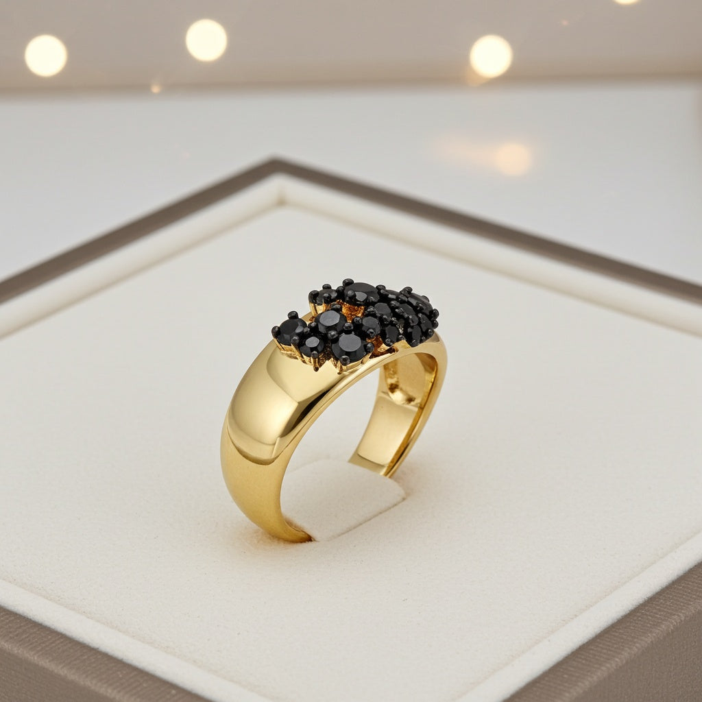 1/2ct. T.W. Black Diamond Open Cluster Wide Ring in 14k Yellow Gold