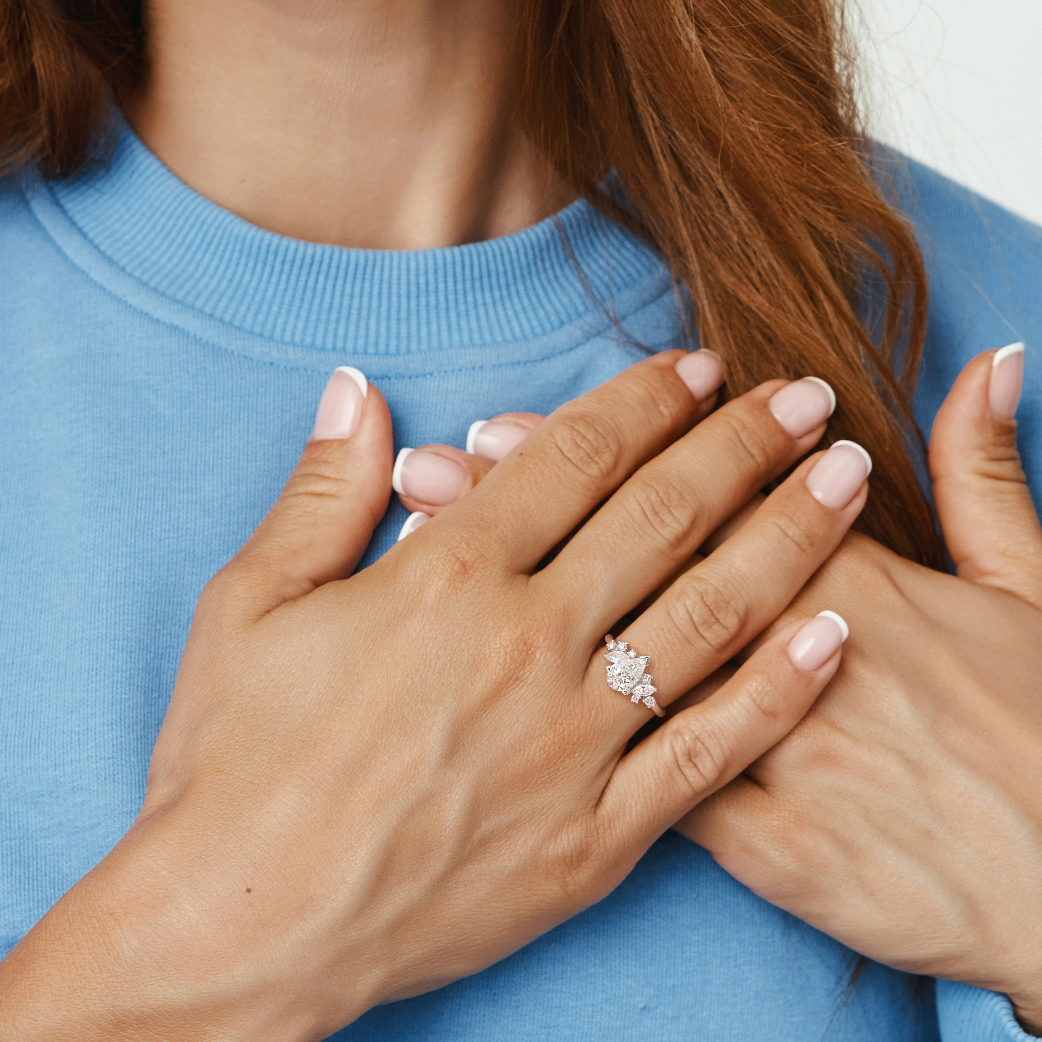 Celebrate your love with the unique brilliance of our Lab-Grown Diamond Cluster Engagement Ring. This stunning ring features an intricate cluster of lab-grown diamonds in various shapes, including round, marquise, and princess cuts, meticulously arranged to create a dazzling display of sparkle and light. The 14k white gold band enhances the ring's modern elegance, providing a sleek and sophisticated backdrop for the multi-shaped diamonds. Perfect for those who appreciate a blend of classic and contemporary design, this engagement ring offers both beauty and ethical luxury, making it a truly special symbol of your commitment.