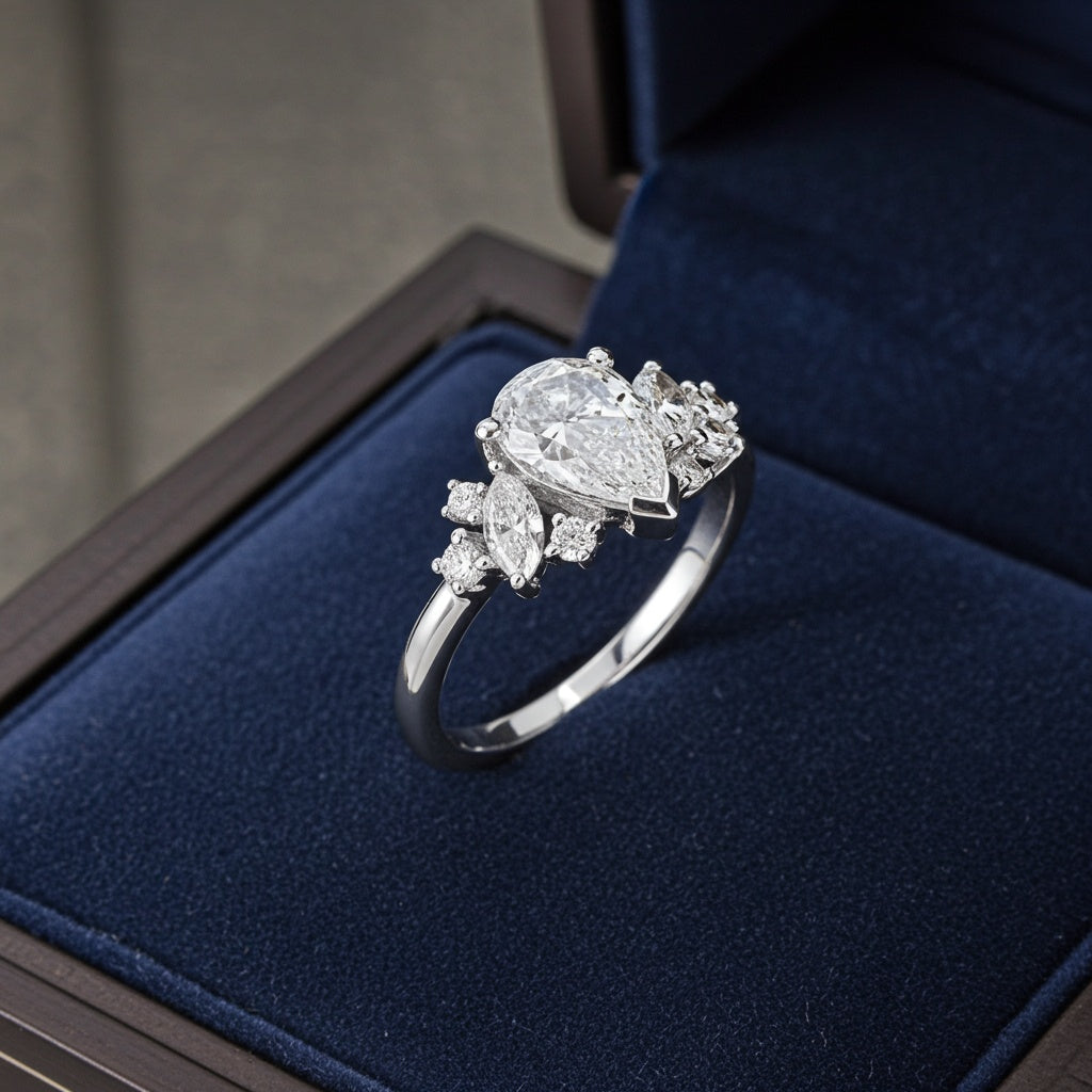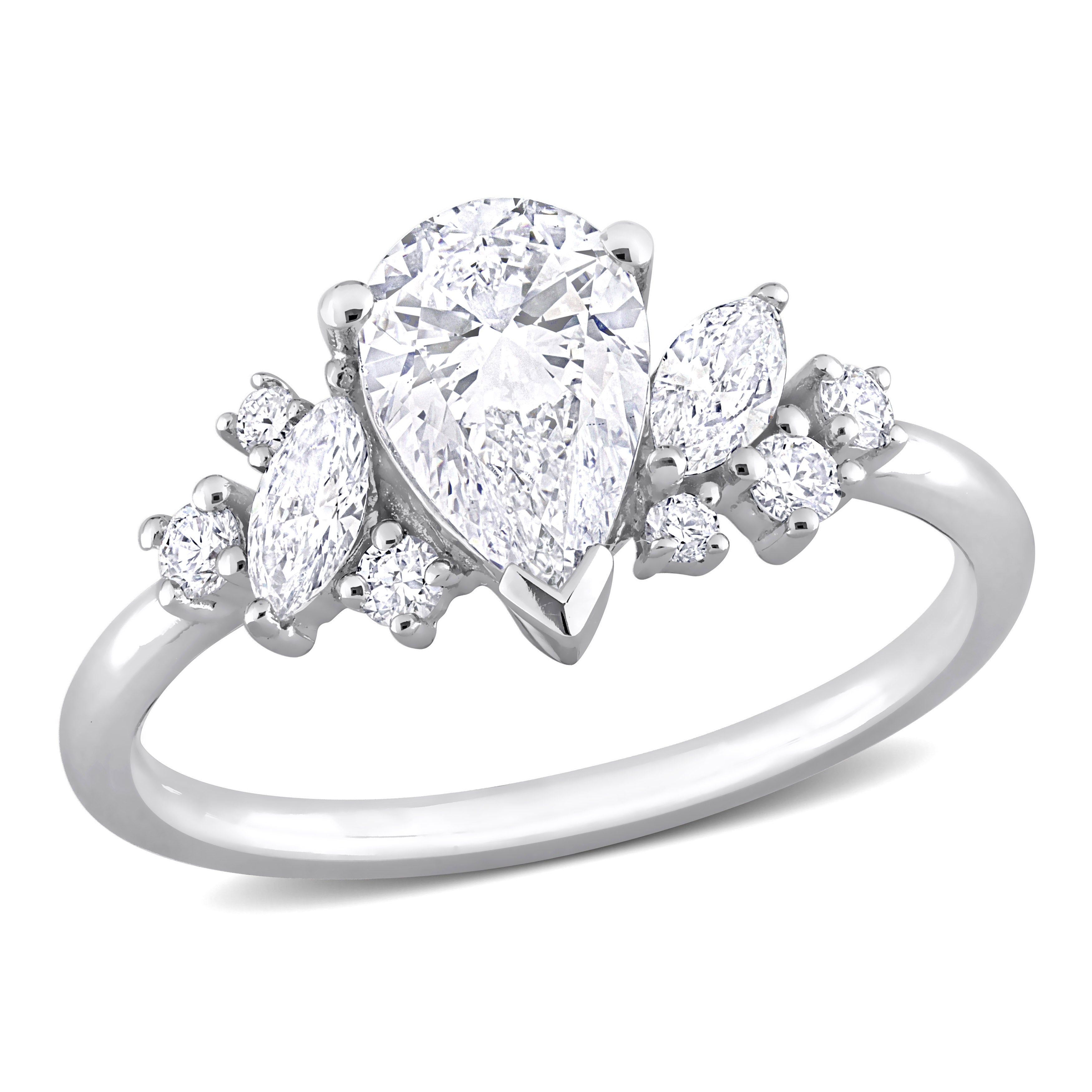 1 3/8ct TW Lab-Grown Diamond Multi-Shaped Cluster Engagement Ring in 14k White Gold