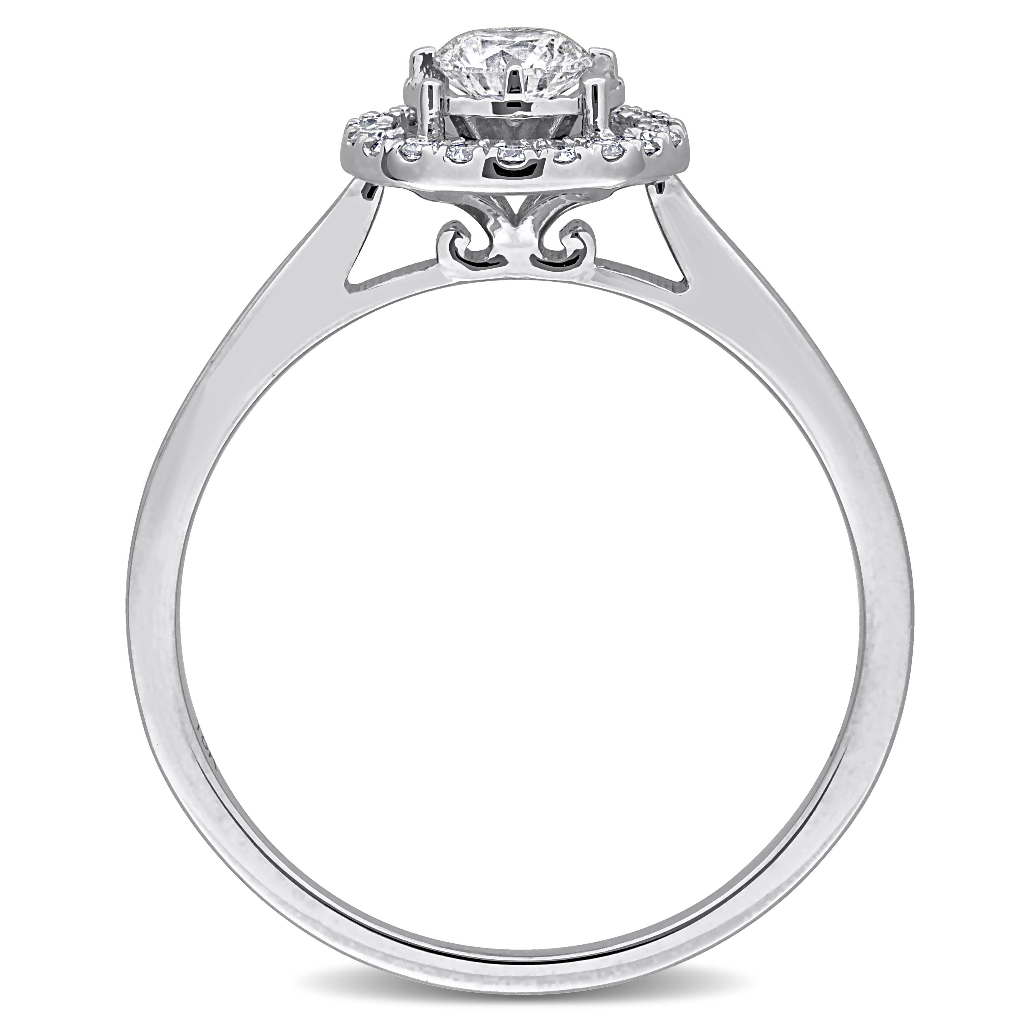 Show off your stylish flair by donning this marvelous halo ring. Featuring round-cut lab-grown diamonds crafted in 18k white gold. This stunning ring is enhanced with a high polish finish.