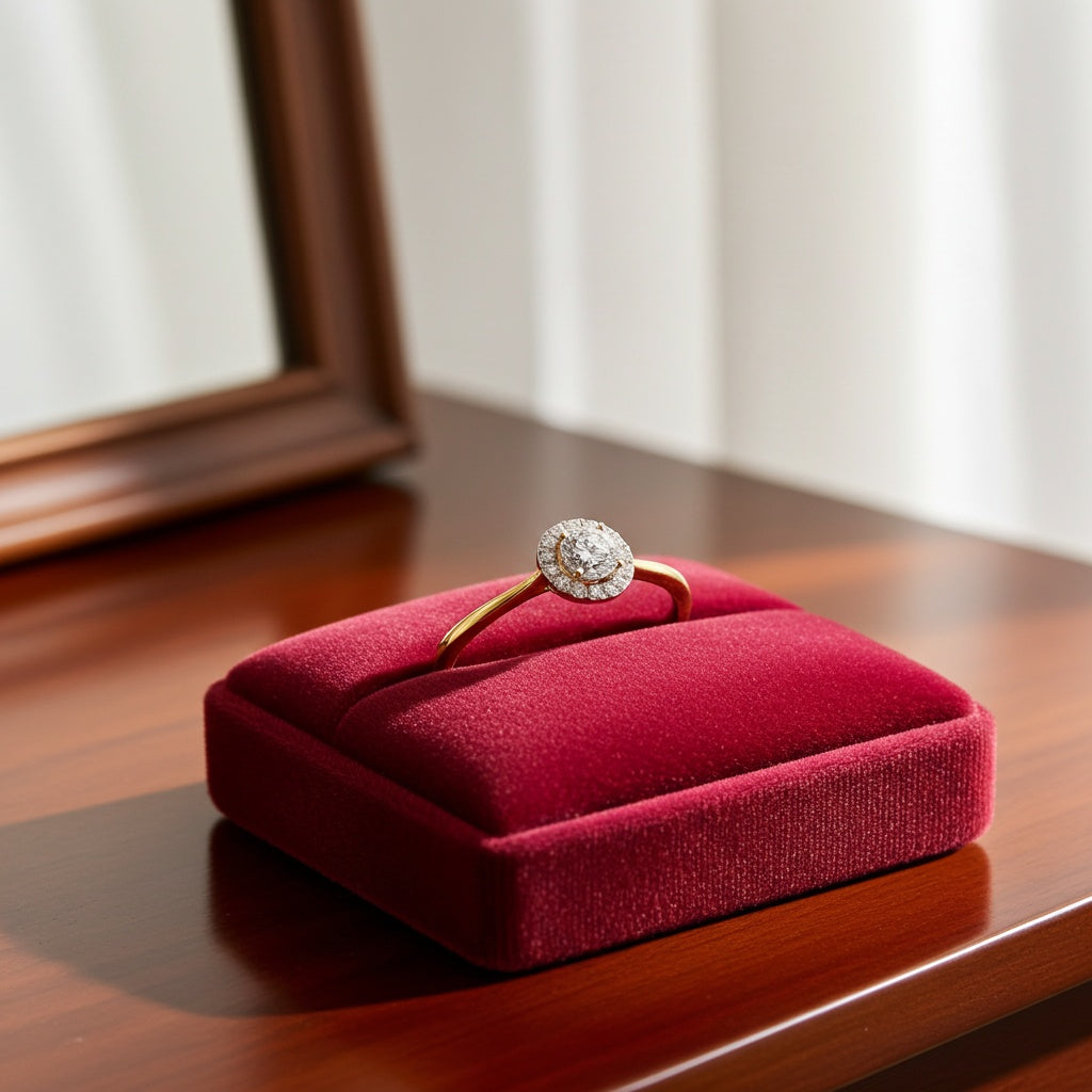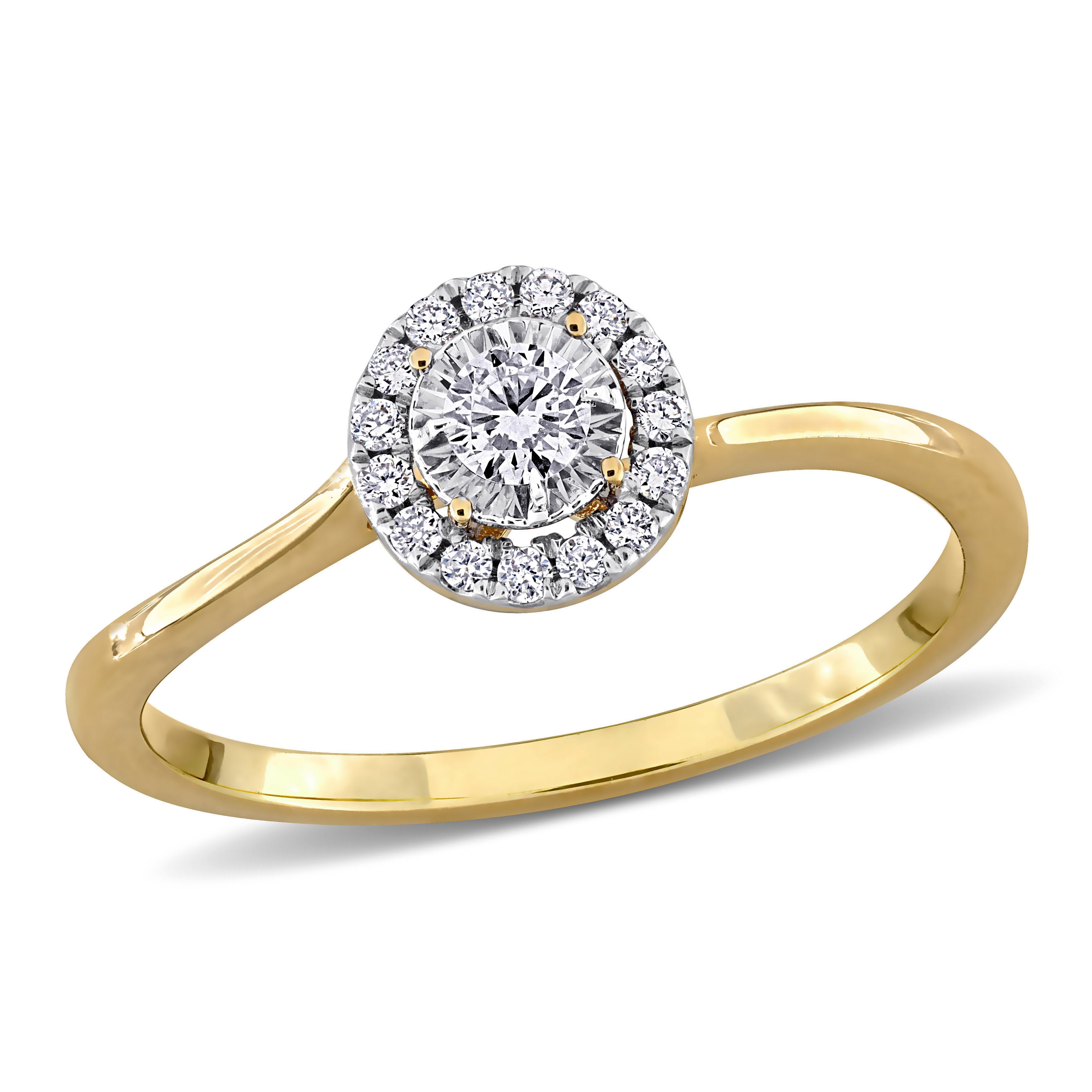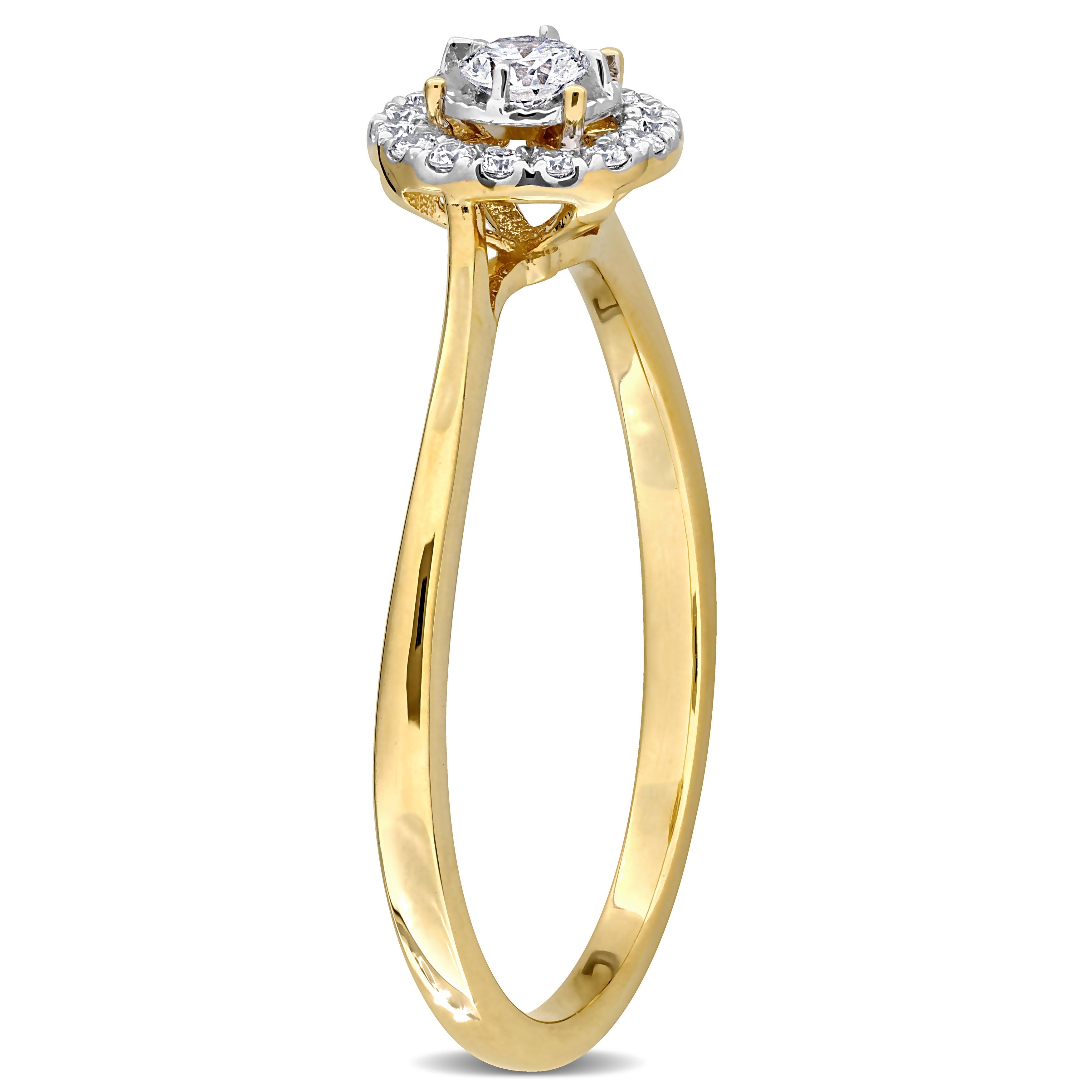 1/6ct TW Lab-Grown Diamond Halo Engagement Ring in 18k Yellow Gold