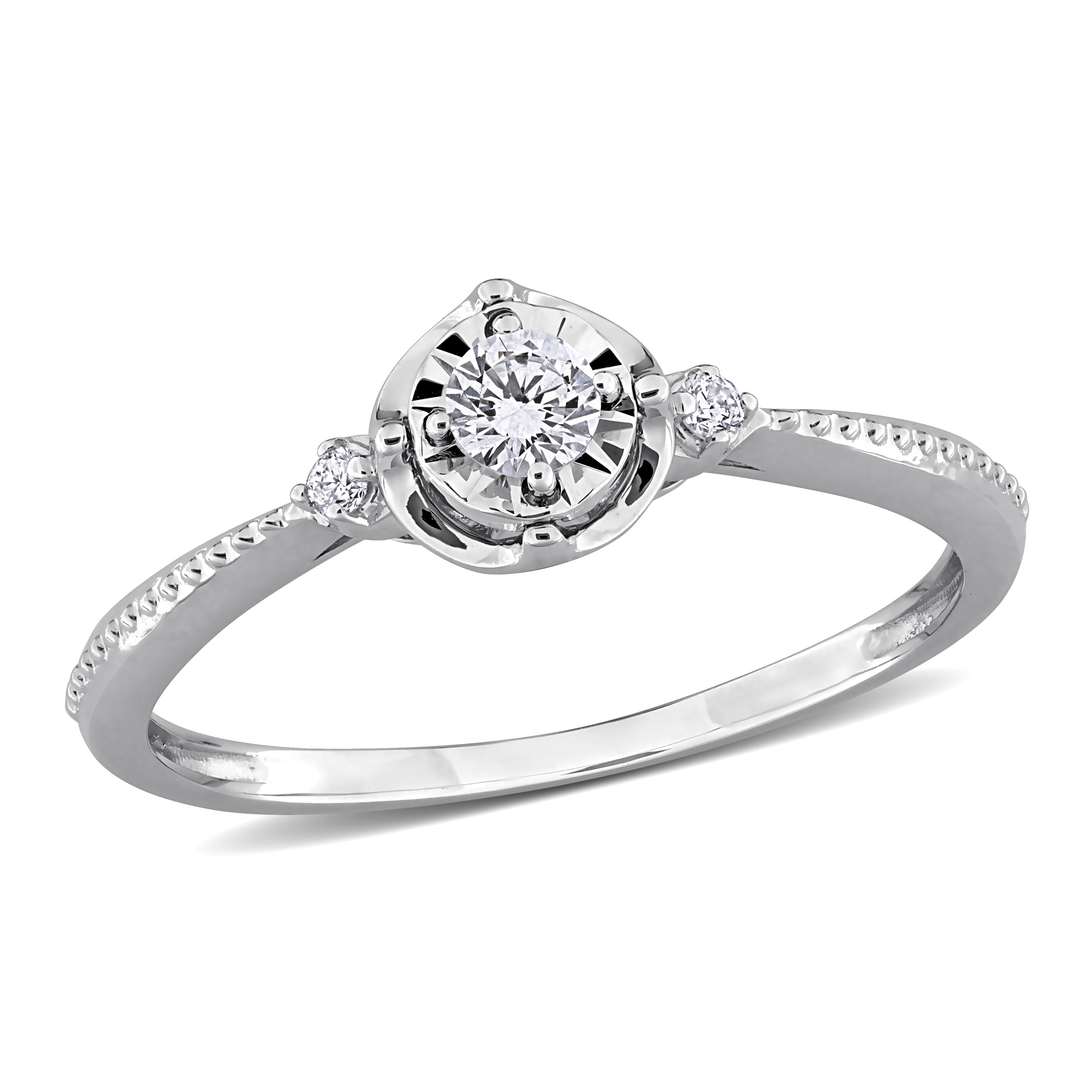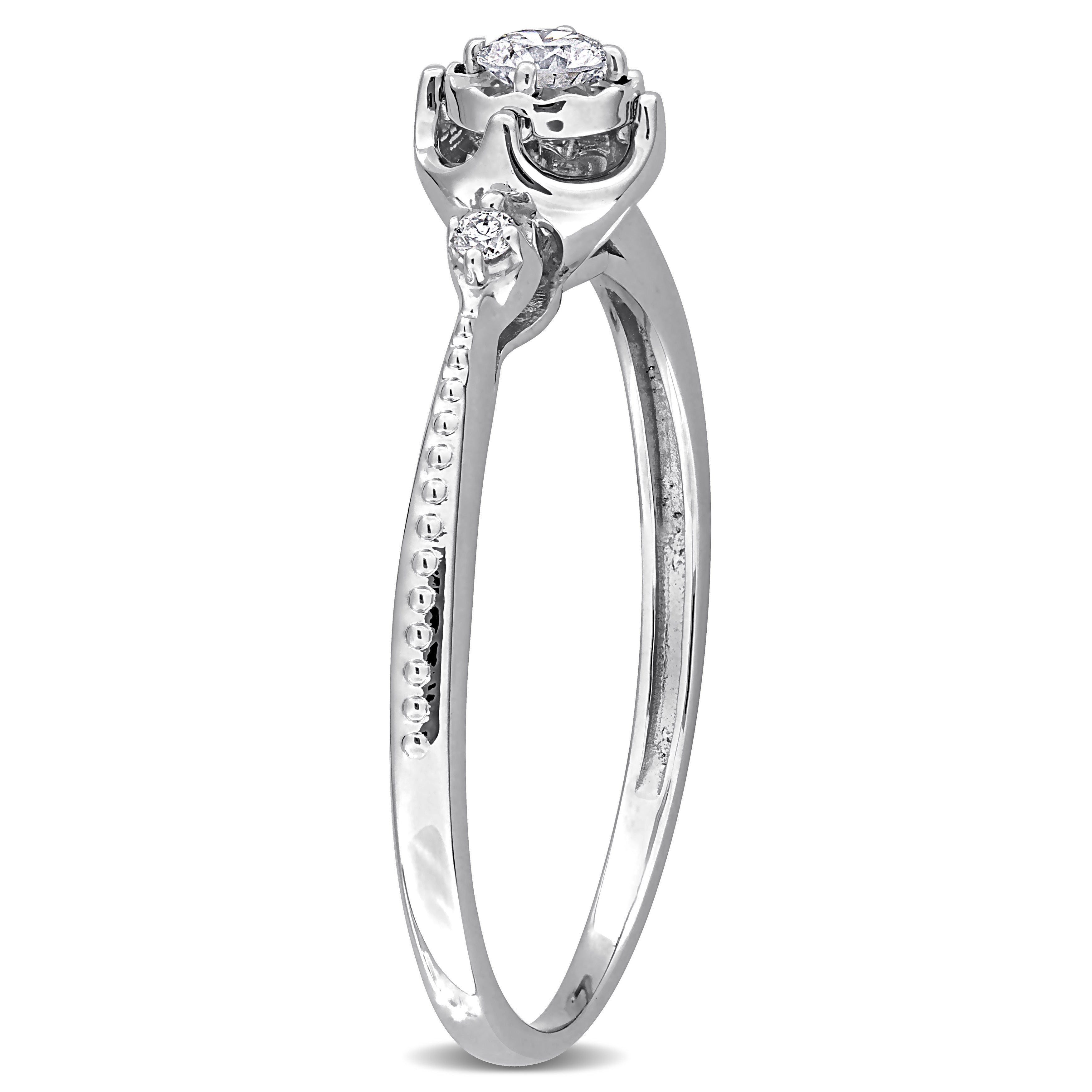 1/8ct TW Lab-Grown Diamond 3-Stone Engagement Ring in 18k White Gold