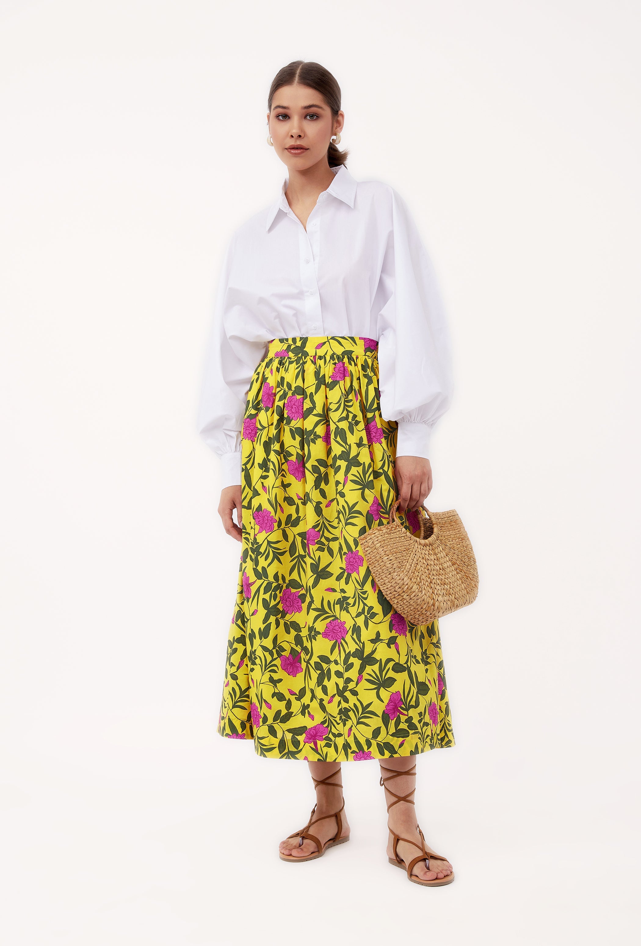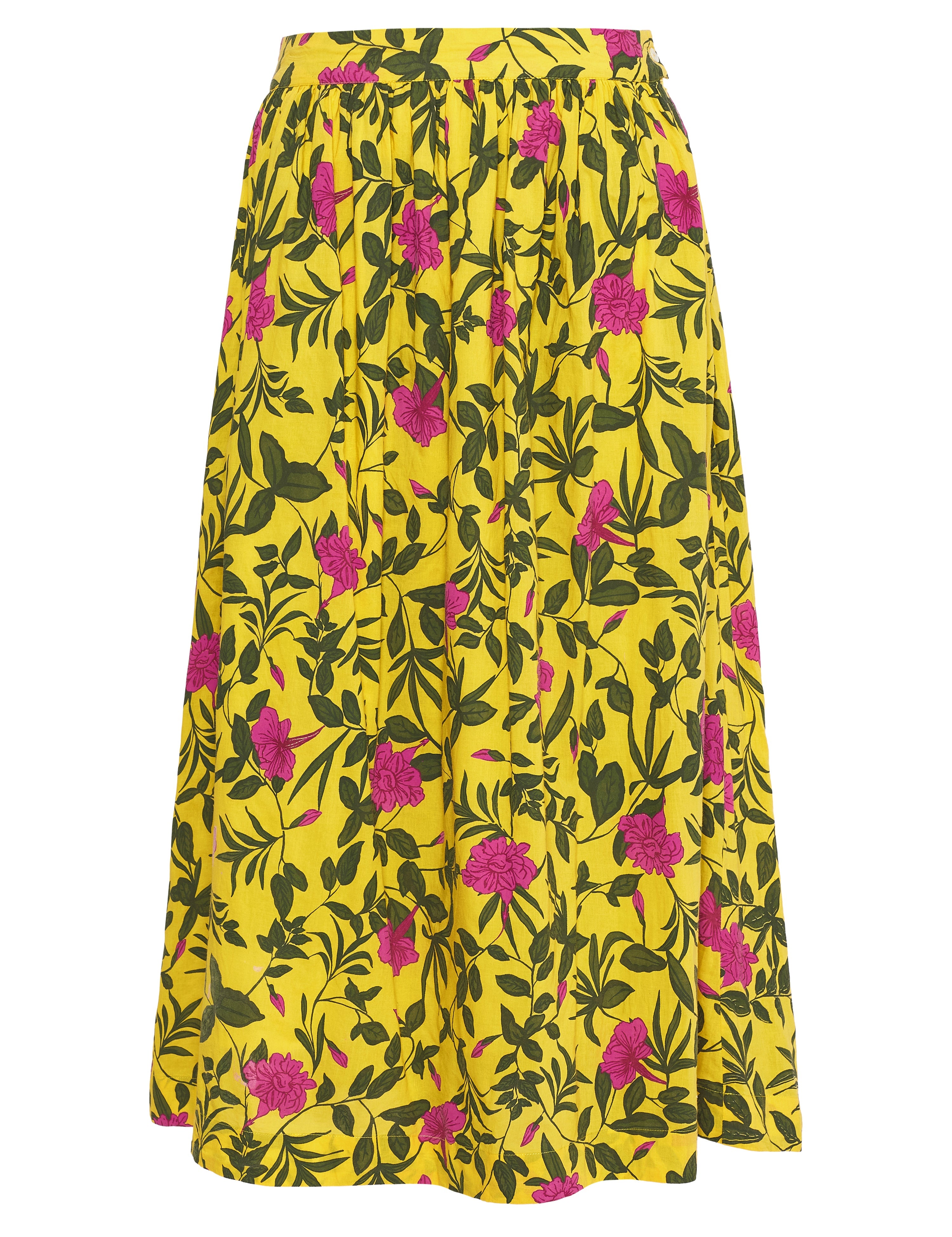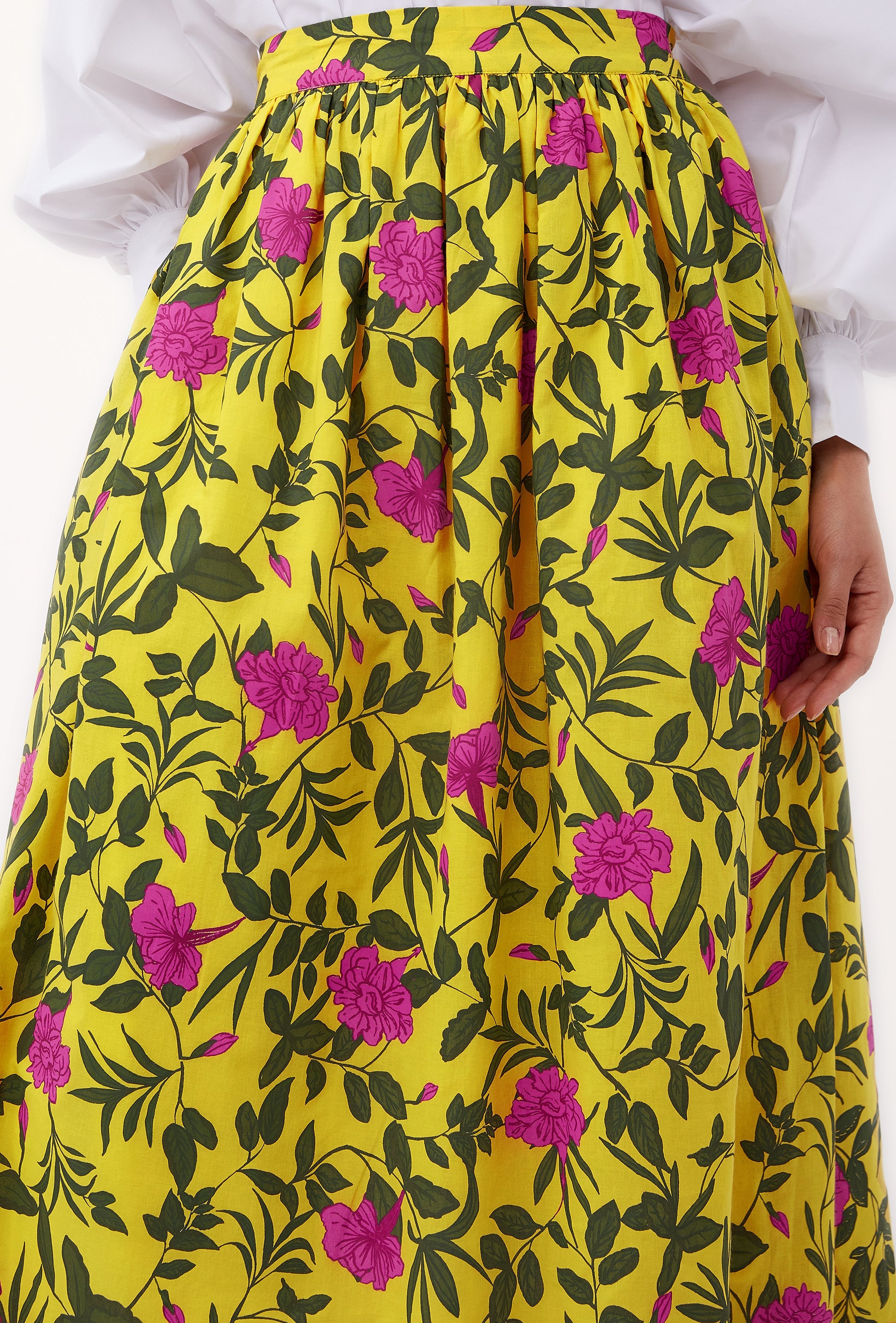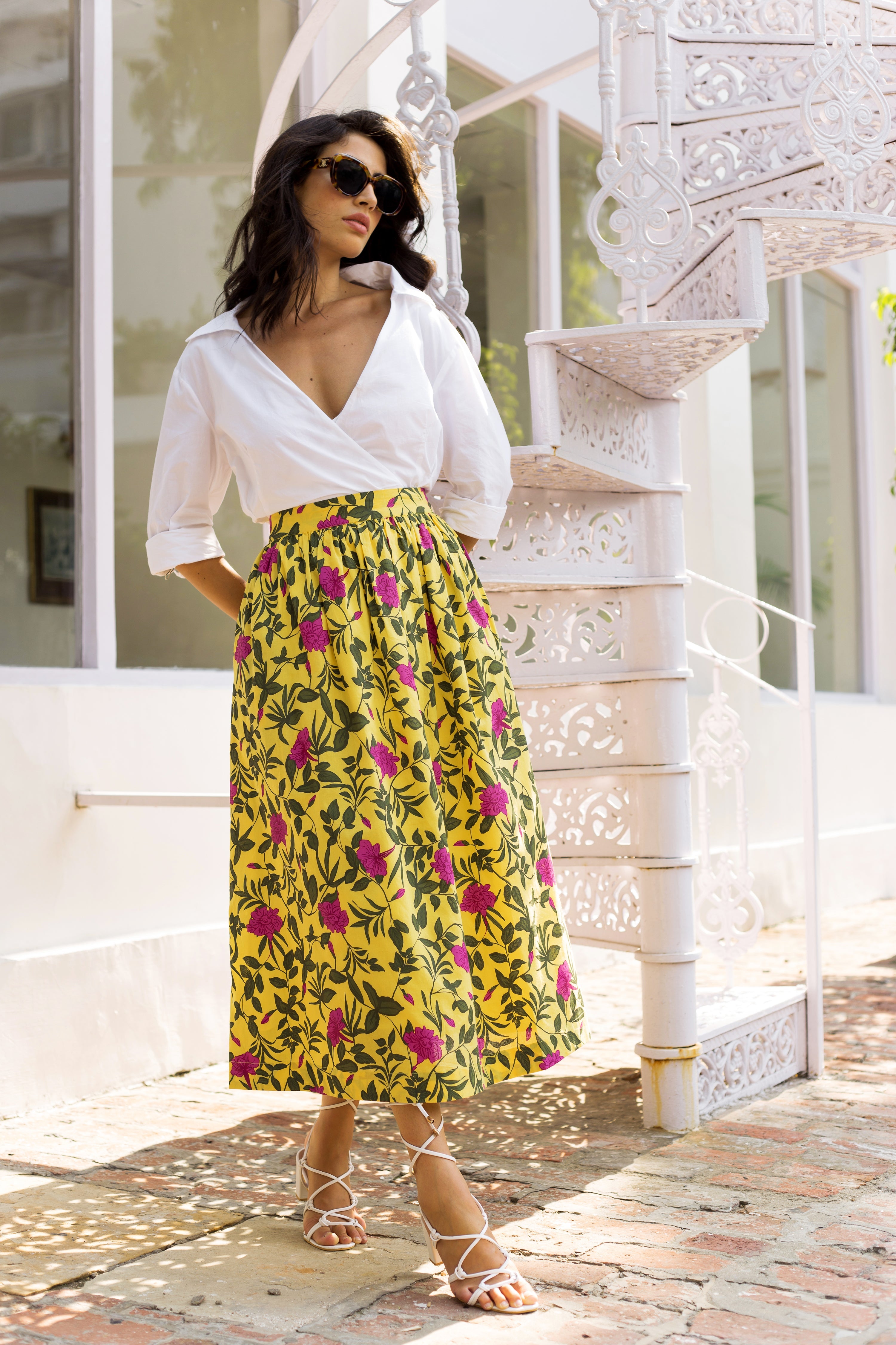 The Anna skirt is a perfect companion for leisurely strolls through the charming streets of Florence. The midi skirt features a flattering A-line silhouette, hidden pockets, and an adjustable waist. Pair it with flats and a white tee for a casual daytime look, or dress it up with heels for a sophisticated evening ensemble. Anna is made from a soft, breathable cotton cambric fabric that will keep you cool on a hot summer day. The print design echoes the charm of Tuscan gardens in full bloom, showcasing vivid depictions of lilies and lush greens.