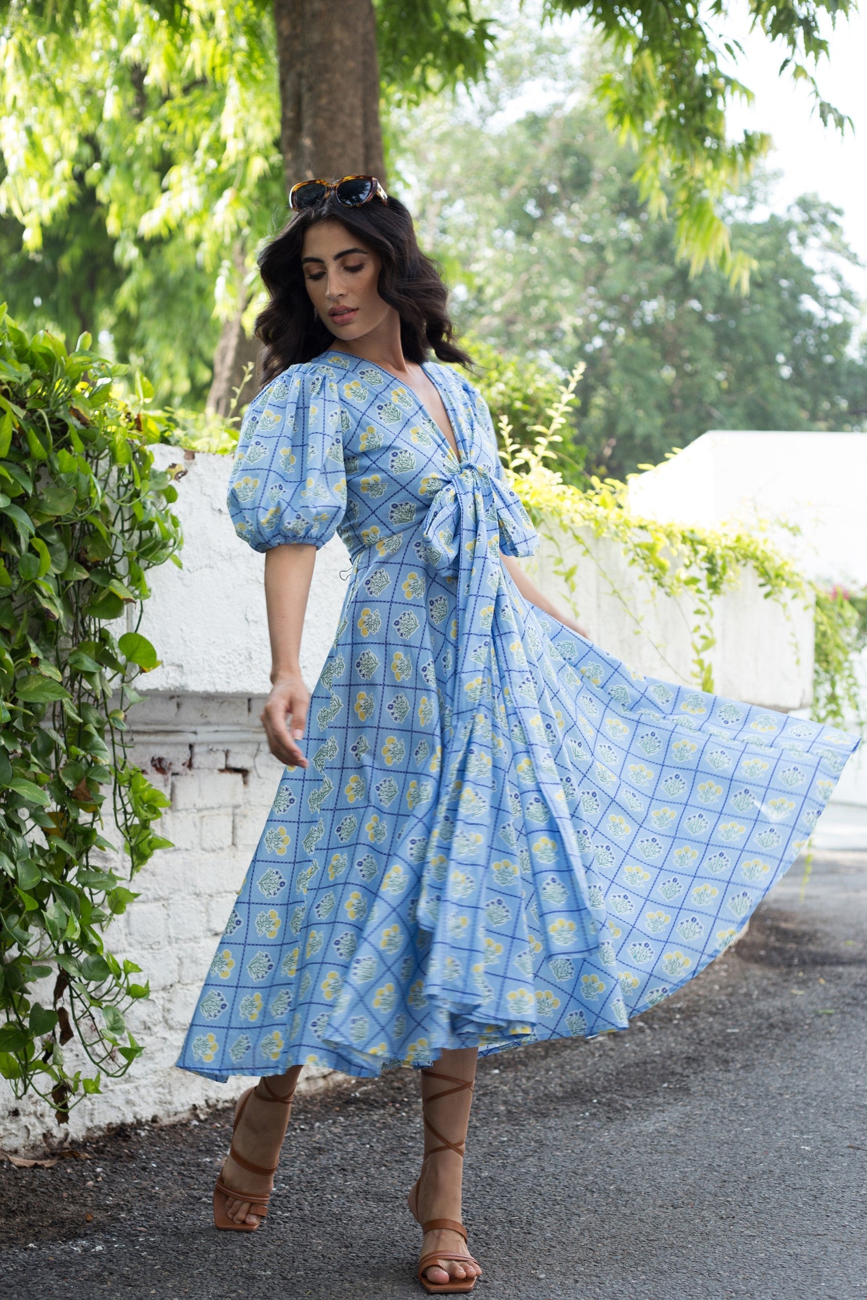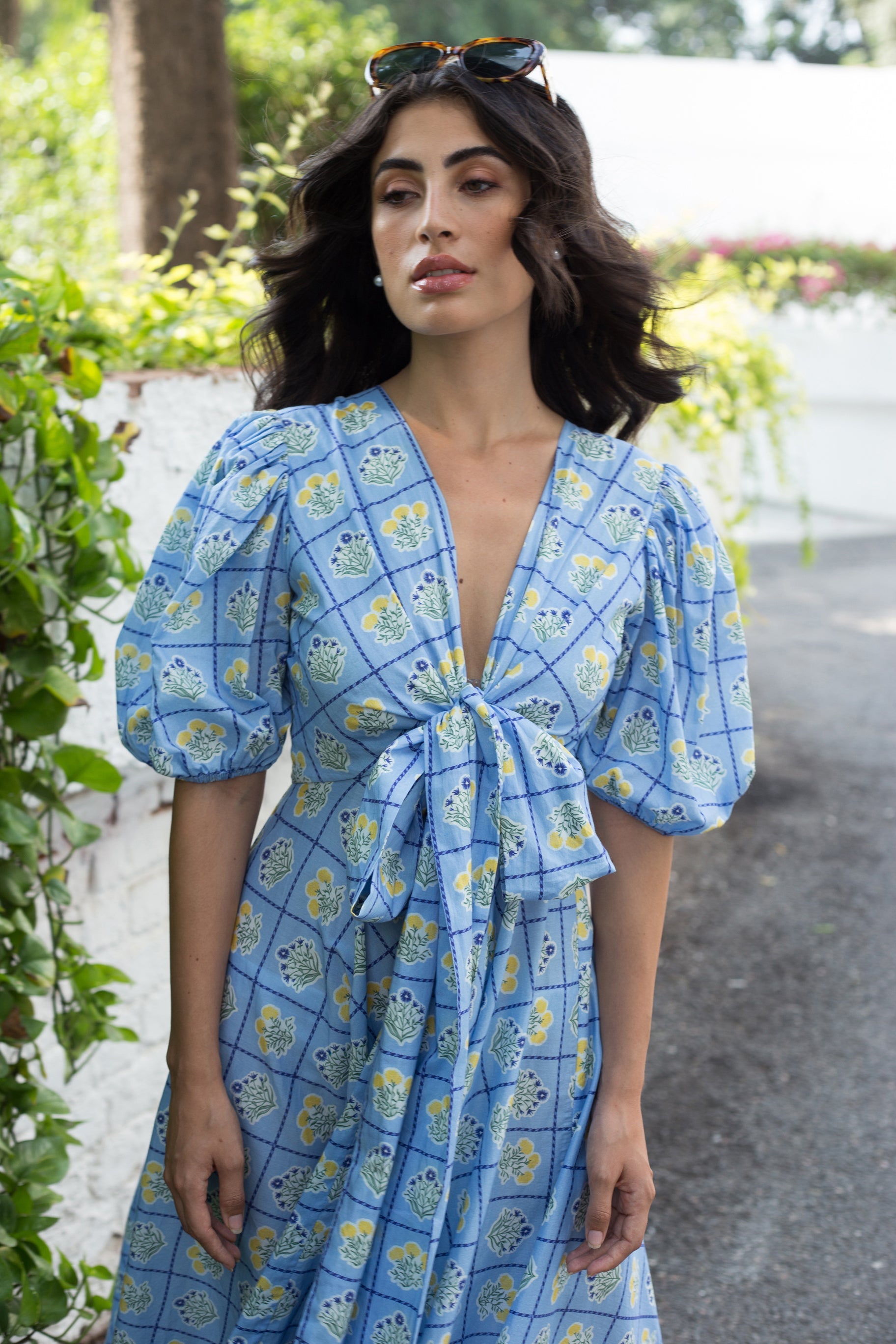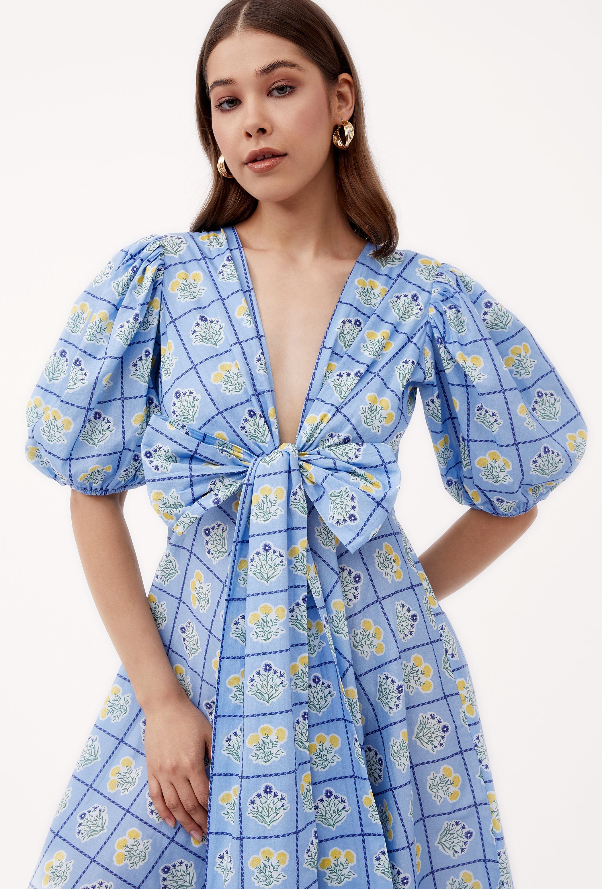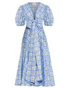 Lola is our signature style and all-time favorite. Crafted from 8 meters of softest, breathable cotton, the Lola is made to twirl in and spread joy! She is chic, easy-to-wear and incredibly versatile: Tie her in the front (with a bow) for an enticing, deep V-neckline or in the back for a bit more coverage. Inspired by a sun-drenched beach day, the artwork references the sorbet-colored beach umbrellas dotting Positano's coastline.