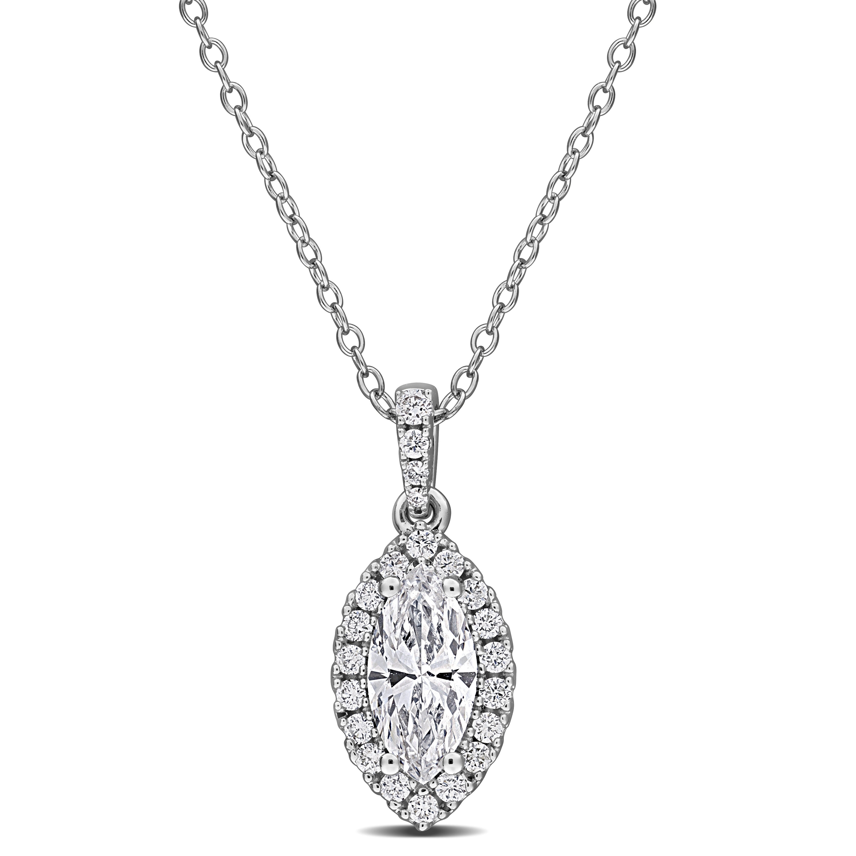 1ct TW Lab-Grown Diamond Marquise Halo Pendant Necklace in Sterling Silver