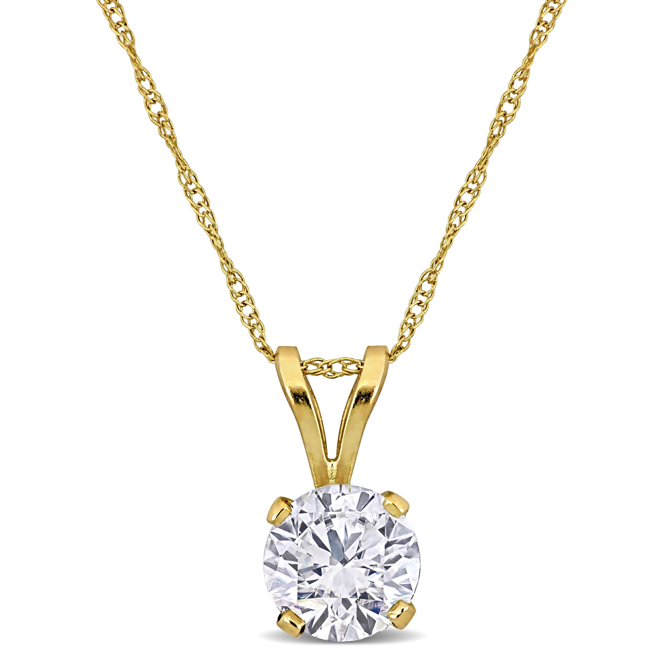 1ct TW Lab-Grown Diamond Solitaire Pendant with Chain in 14k Yellow Gold