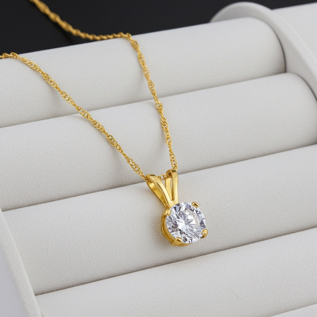 Elevate your style with the timeless charm of our Lab-Grown Diamond Solitaire Pendant, gracefully suspended on a 17-inch 14k gold chain. This pendant features a radiant 1-carat lab-grown diamond that captures and reflects light beautifully, set in a minimalistic yet elegant setting. The sleek yellow gold chain complements the diamond's brilliance, providing a sophisticated touch to both day and evening outfits.