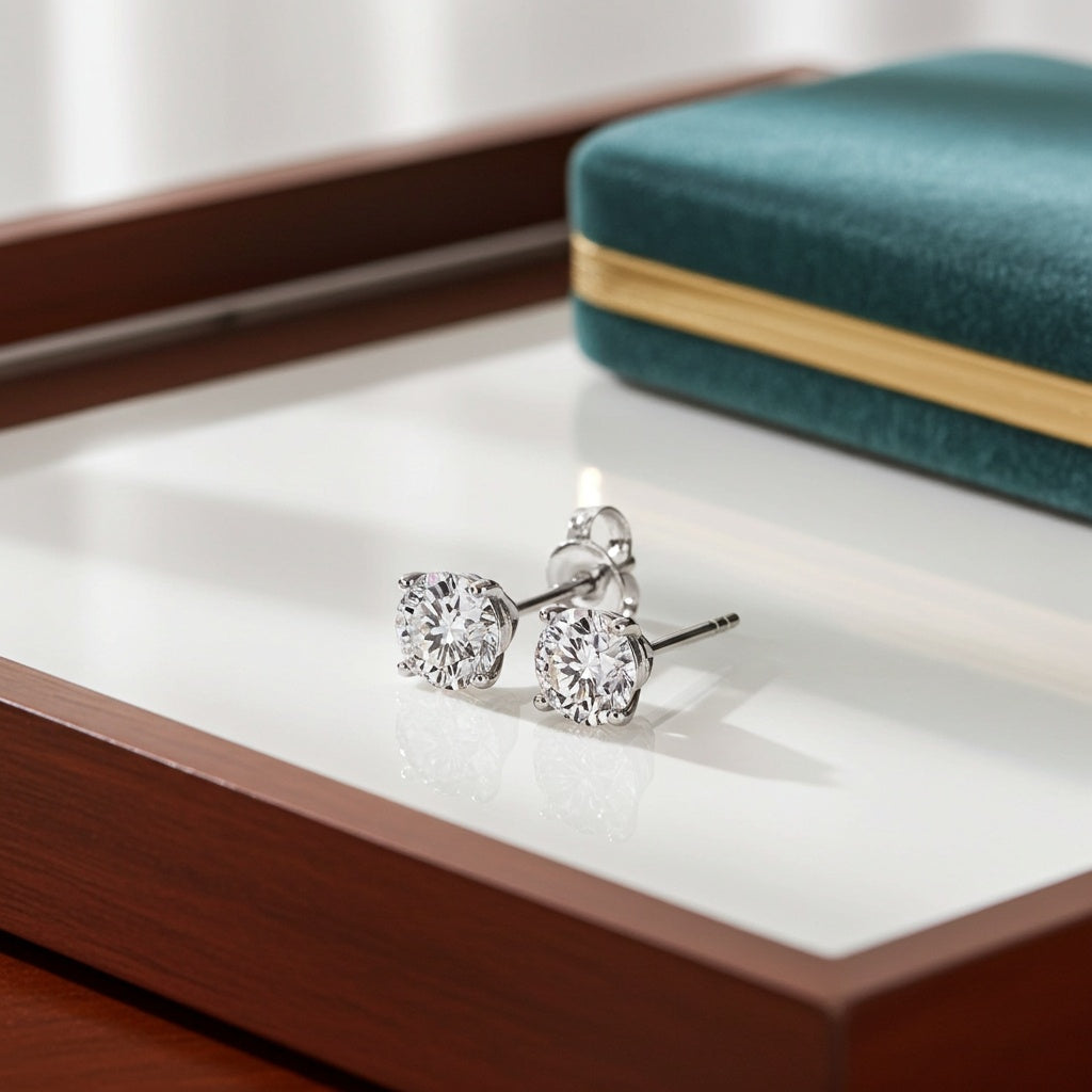 1ct TW Lab-Grown Diamond Solitaire Stud Earrings in 14k White Gold