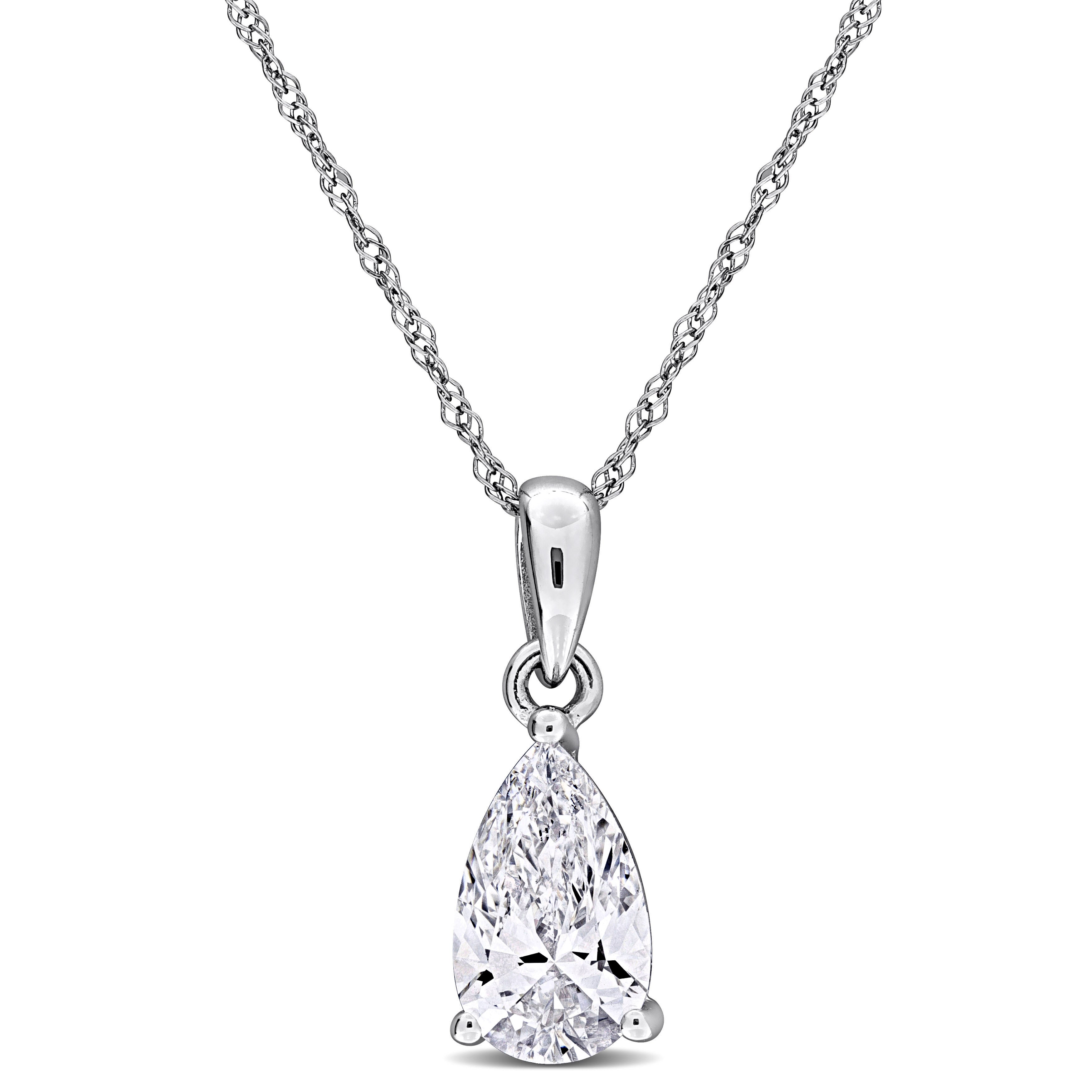 1ct TW Pear-Shaped Lab-Grown Diamond Solitaire Pendant Necklace in 10k White Gold