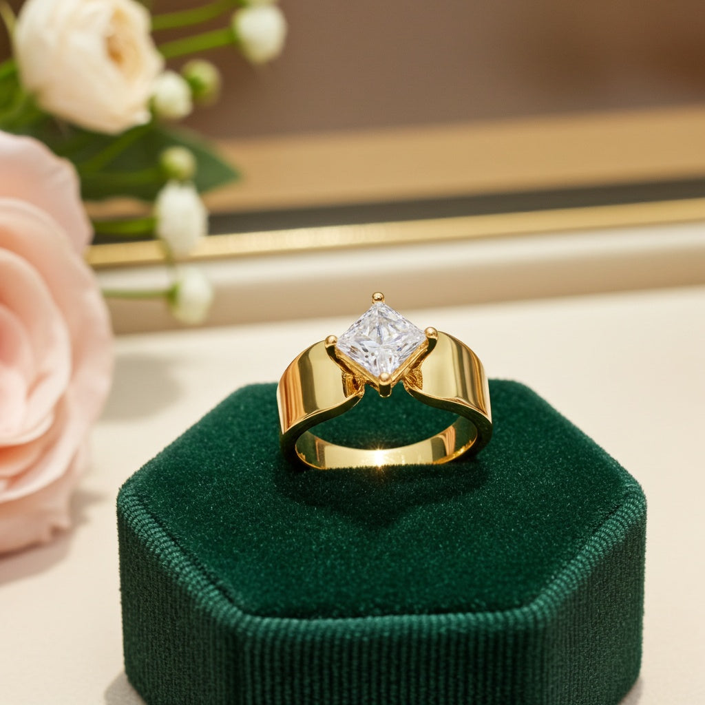 Enhance your elegance with this refined Princess-Cut Diamond Solitaire Ring. Showcasing a dazzling 1-carat princess-cut diamond, beautifully set in a polished 14k yellow gold band, this ring exudes timeless sophistication. Its classic design and superior craftsmanship make it the ideal choice for engagements or significant milestones, symbolizing a love that lasts a lifetime.