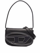 Elevate your everyday style with the 1DR Bag from Diesel. This sleek shoulder bag features premium black leather construction with distinctive white contrast piping that traces the iconic D logo across the front flap.