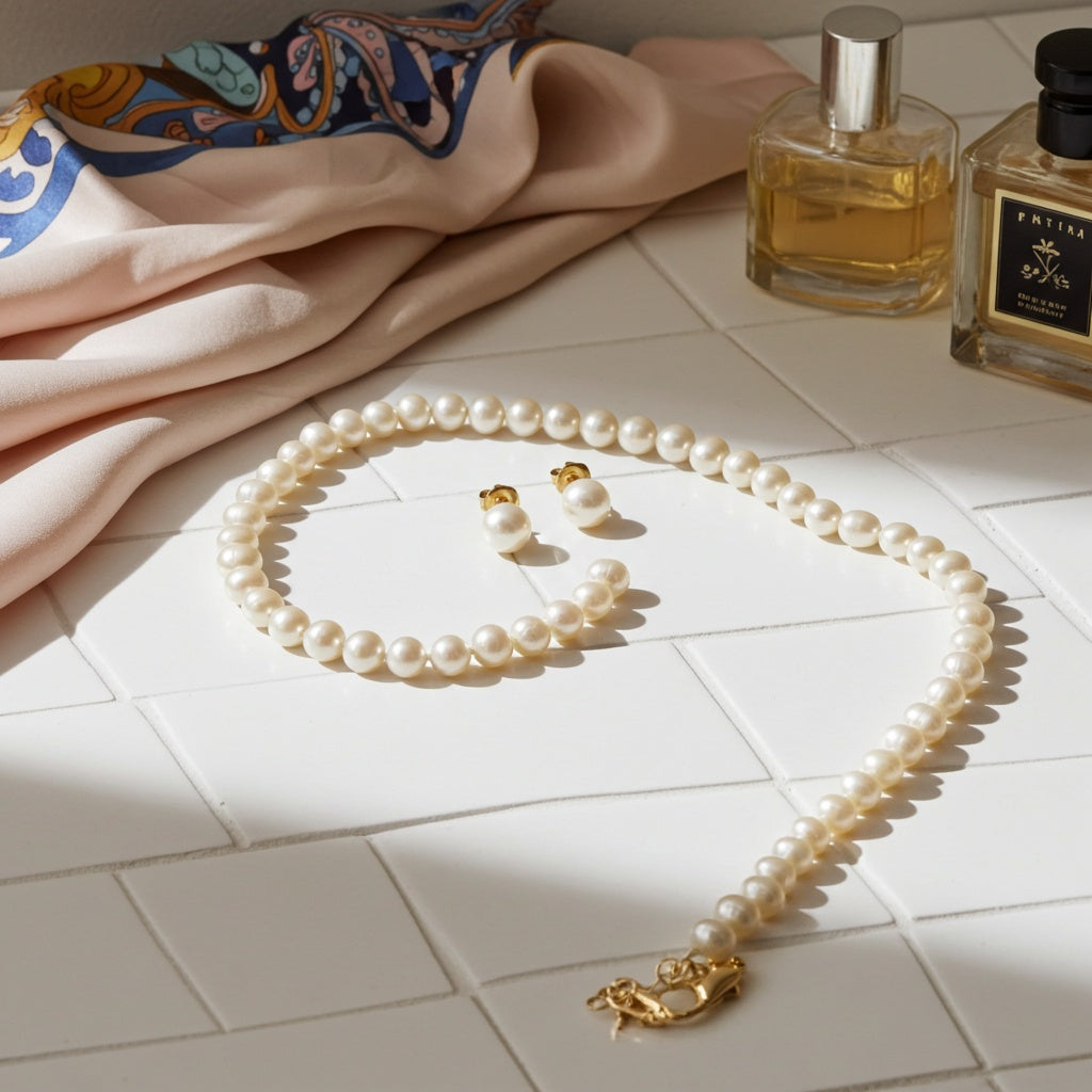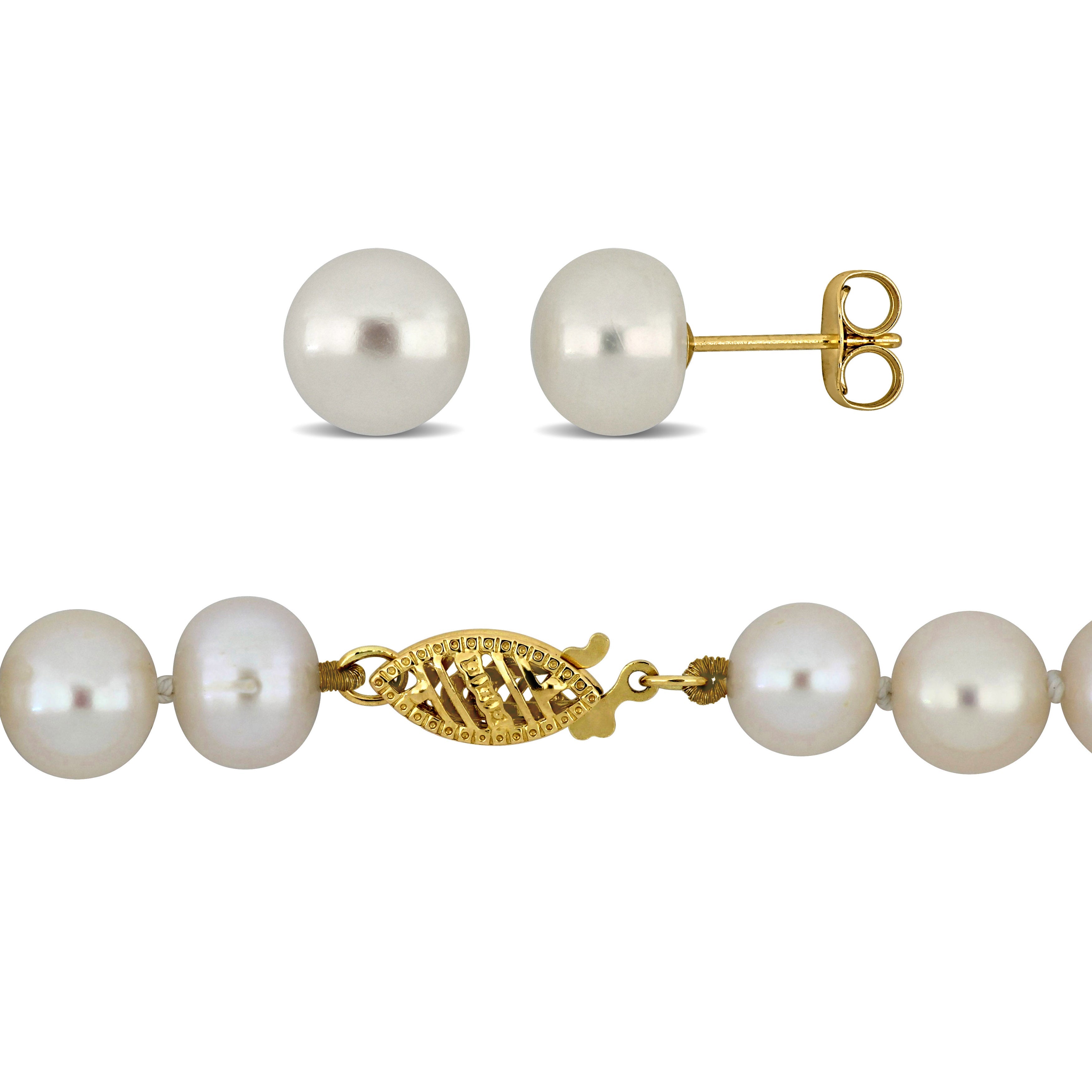 2-Piece Set Cultured Freshwater Pearl Necklace & Earrings in 10k Gold