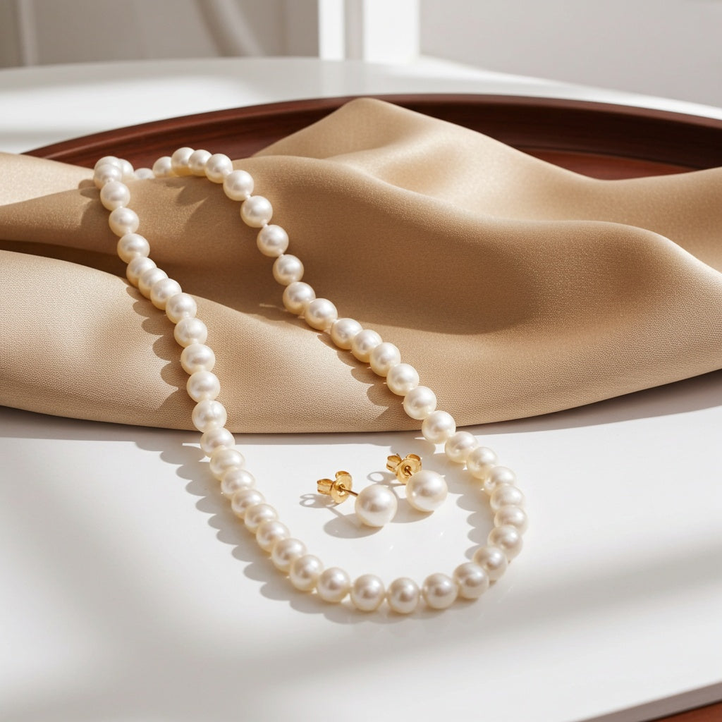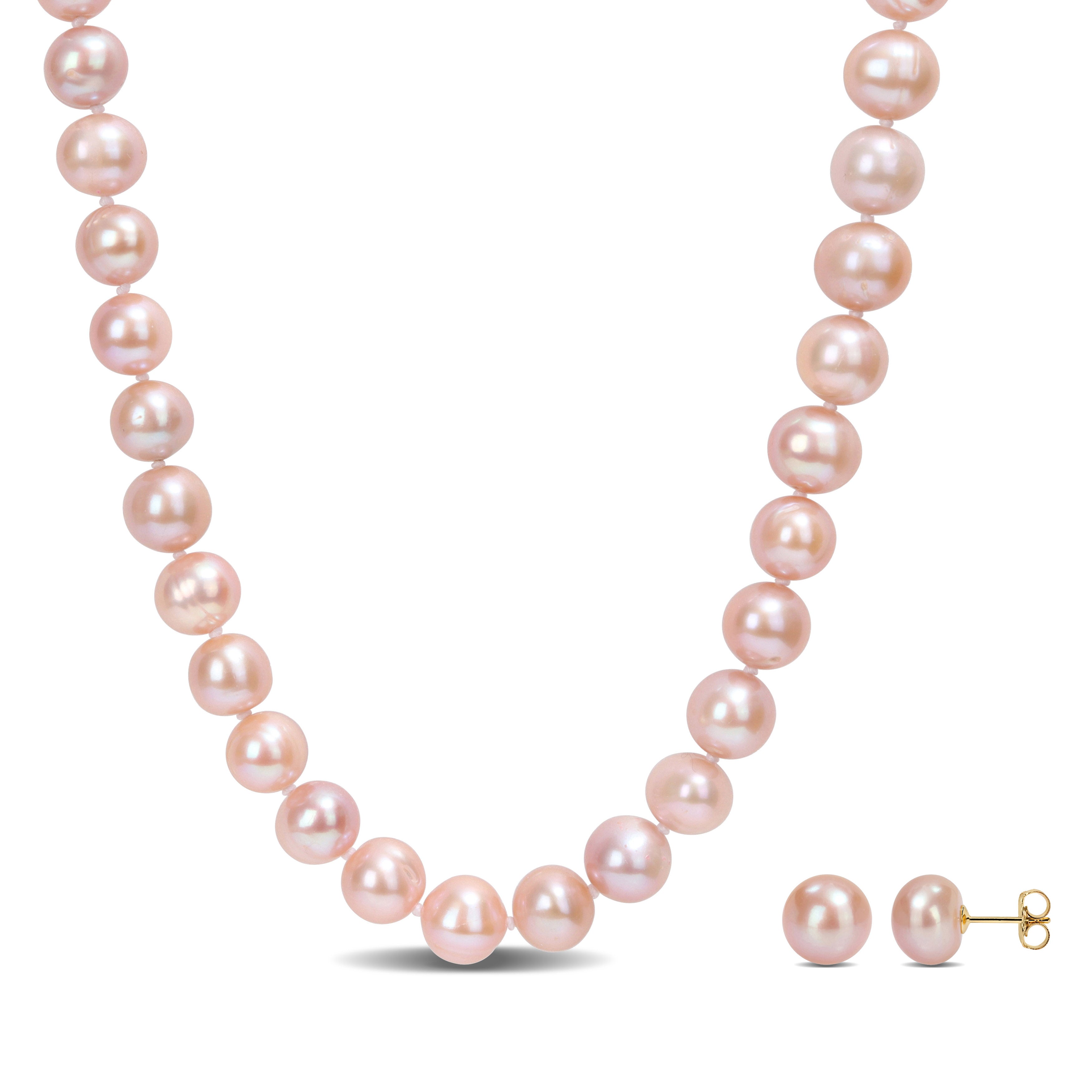 2-Piece Set Cultured Freshwater Pearl Necklace & Earrings in 14k Gold