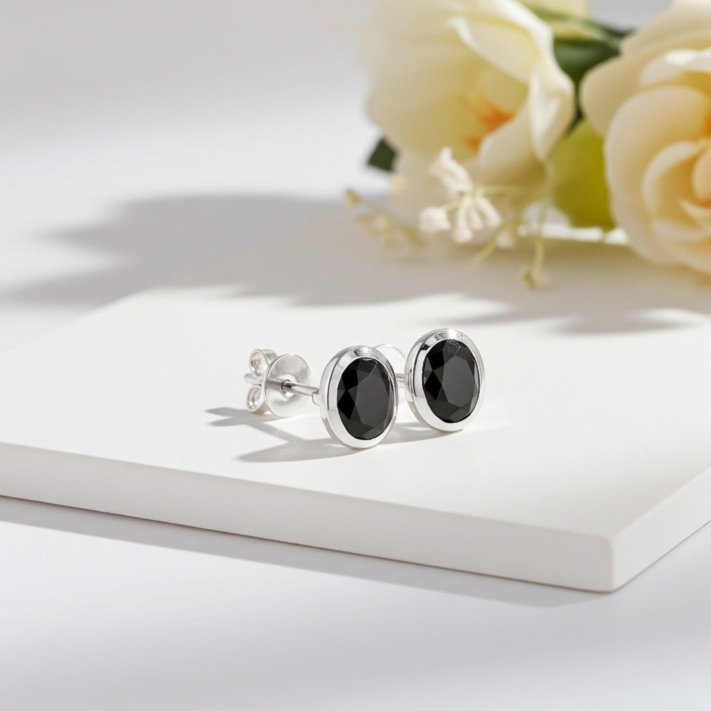 Make a bold and modern statement with our Black Diamond Stud Earrings. These striking earrings feature oval-cut, bezel-set black diamonds, each weighing 1 carat, set in a radiant 14k white gold setting, creating an eye-catching and versatile accessory. The black diamonds add a touch of mystery and sophistication, elevate your look with the dramatic beauty of these black diamond stud earrings.