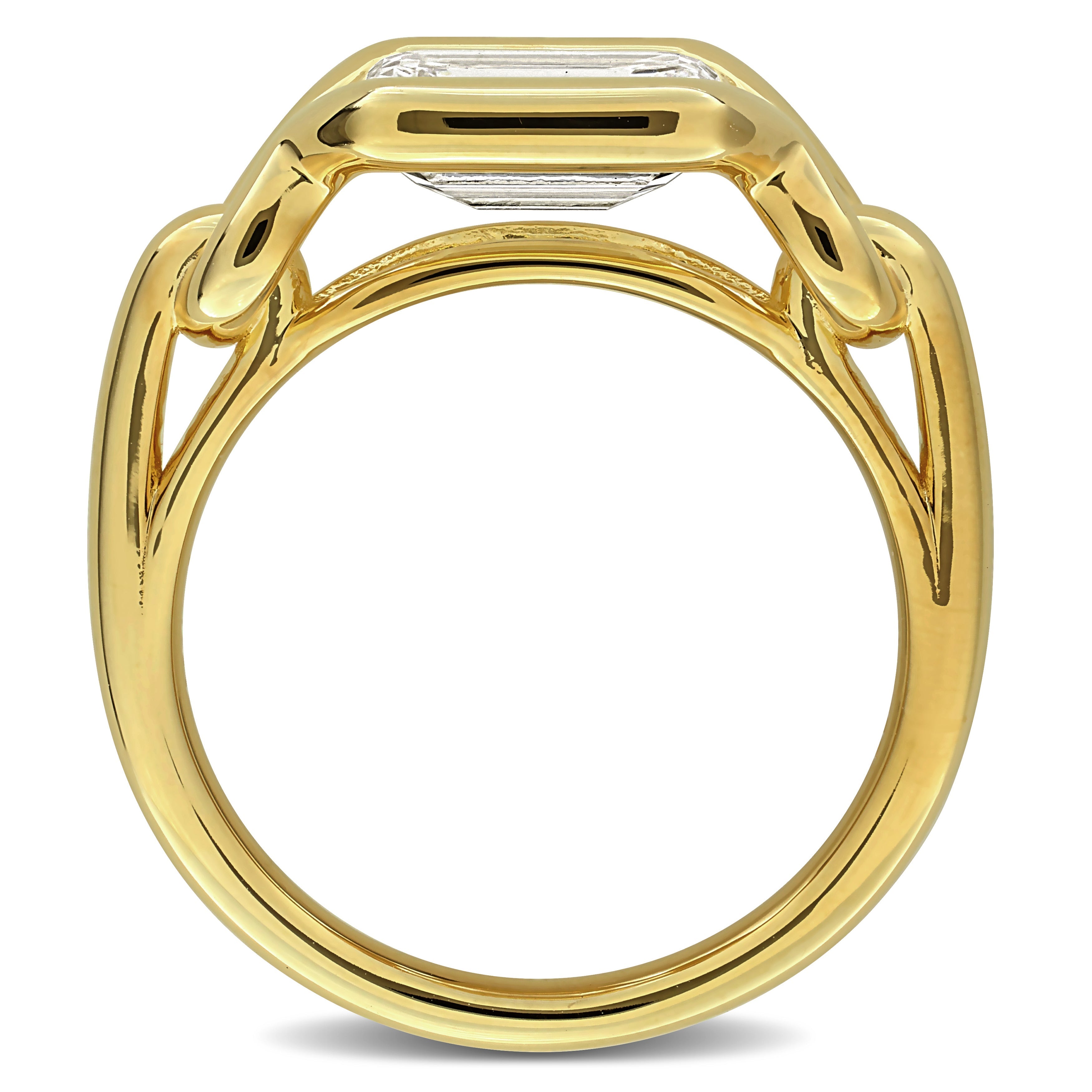 Modern elegance meets timeless sparkle in this lab-grown diamond ring. The ring features a striking emerald-cut lab-grown diamond framed in sleek 18K gold vermeil plating. The clean lines and contemporary silhouette highlight the brilliance and clarity of the diamond. This ring is enhanced with a high polish finish.