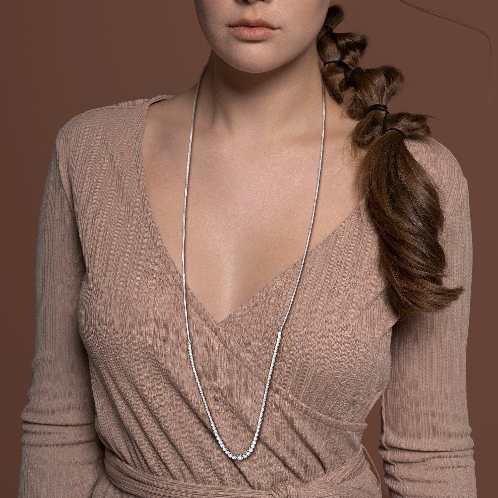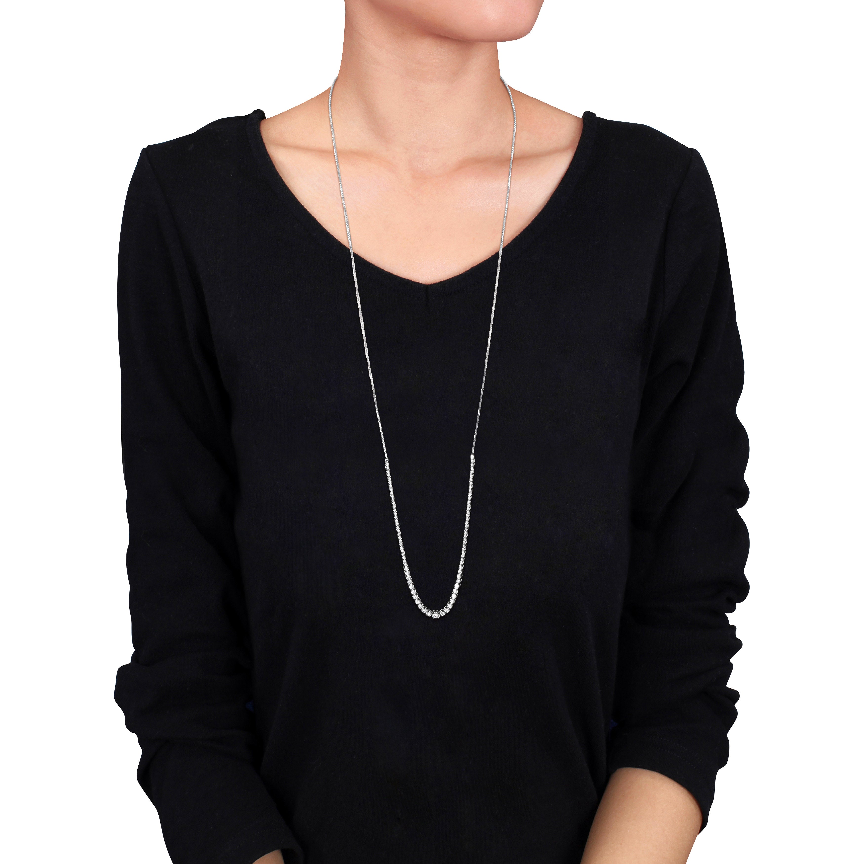 Discover the epitome of luxury with our Lab-Grown Diamond Necklace in 14k white gold, an exceptional piece designed to dazzle. This exquisite necklace extends over a length of 33.5 inches and is adorned with beautifully set graduated size lab-grown diamonds that shimmer with every movement. Each diamond is expertly placed within the sleek 14k white gold chain, creating an elegant and continuous sparkle. Ideal for layering or as a standalone statement piece, this necklace offers versatility and timeless appeal.
